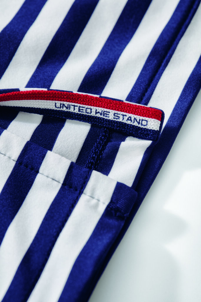 Les uniformes Ralph Lauren reprennent la palette symbolique rouge, blanc et bleu, en hommage à l’unité et à l’esprit sportif américain. Conçus pour affronter toutes les conditions climatiques, ils mêlent pulls en cachemire, vestes coupe-vent techniques, gilets et demi-zippés. Les tissus performants intègrent des technologies avancées d’évacuation de l’humidité, garantissant confort, fraîcheur et concentration sur le terrain.