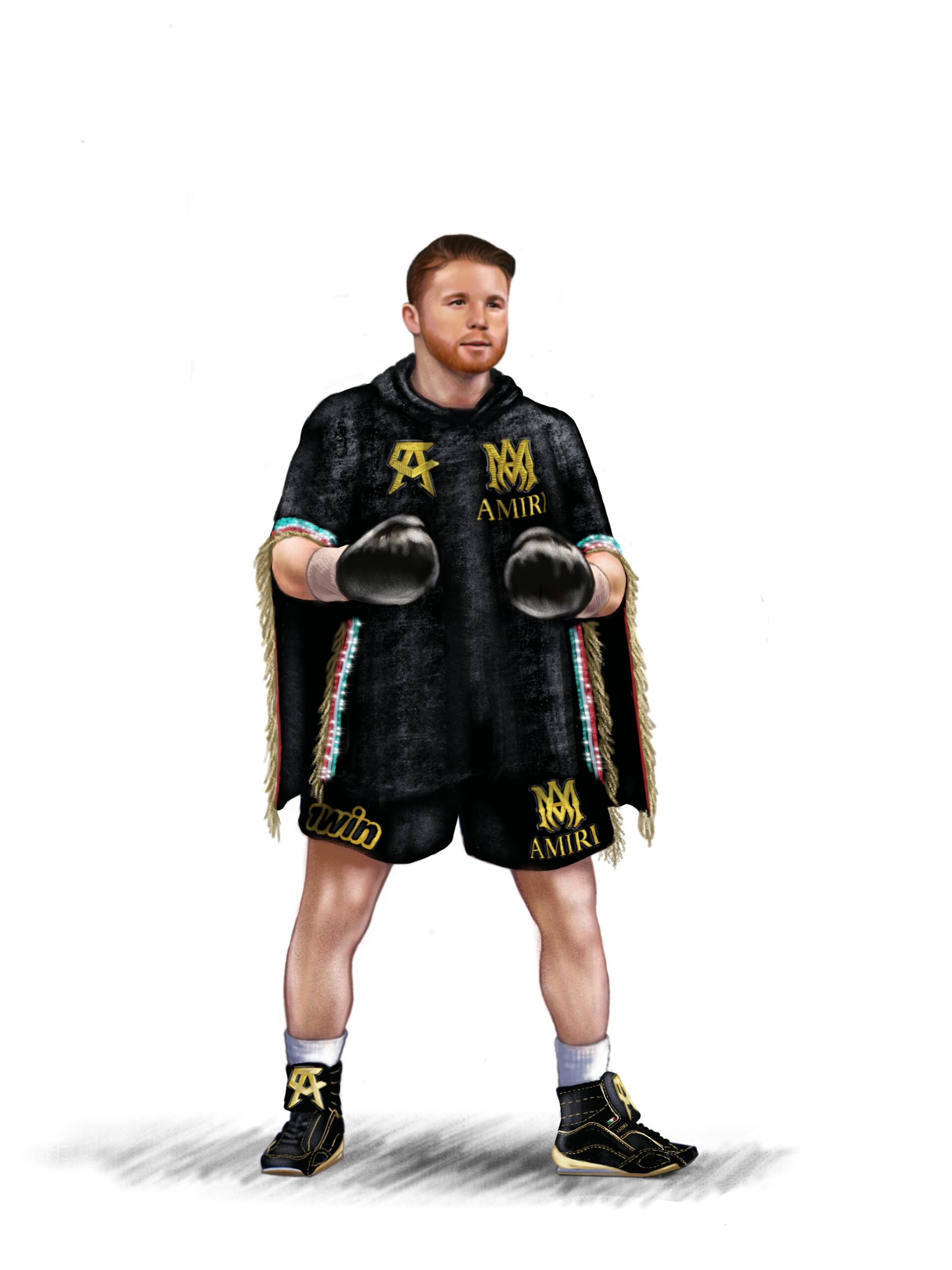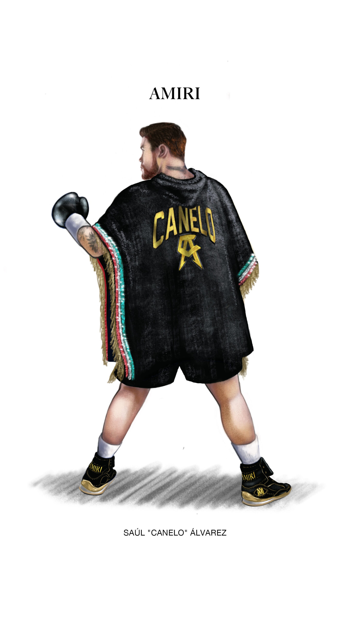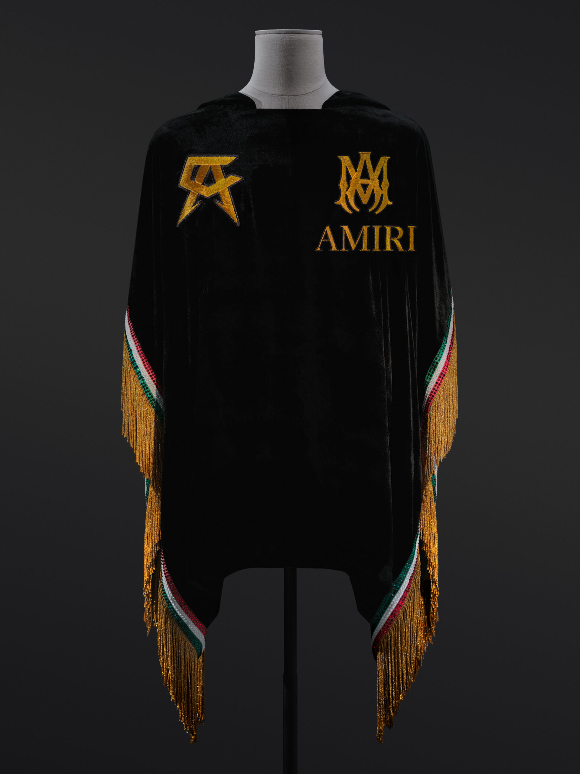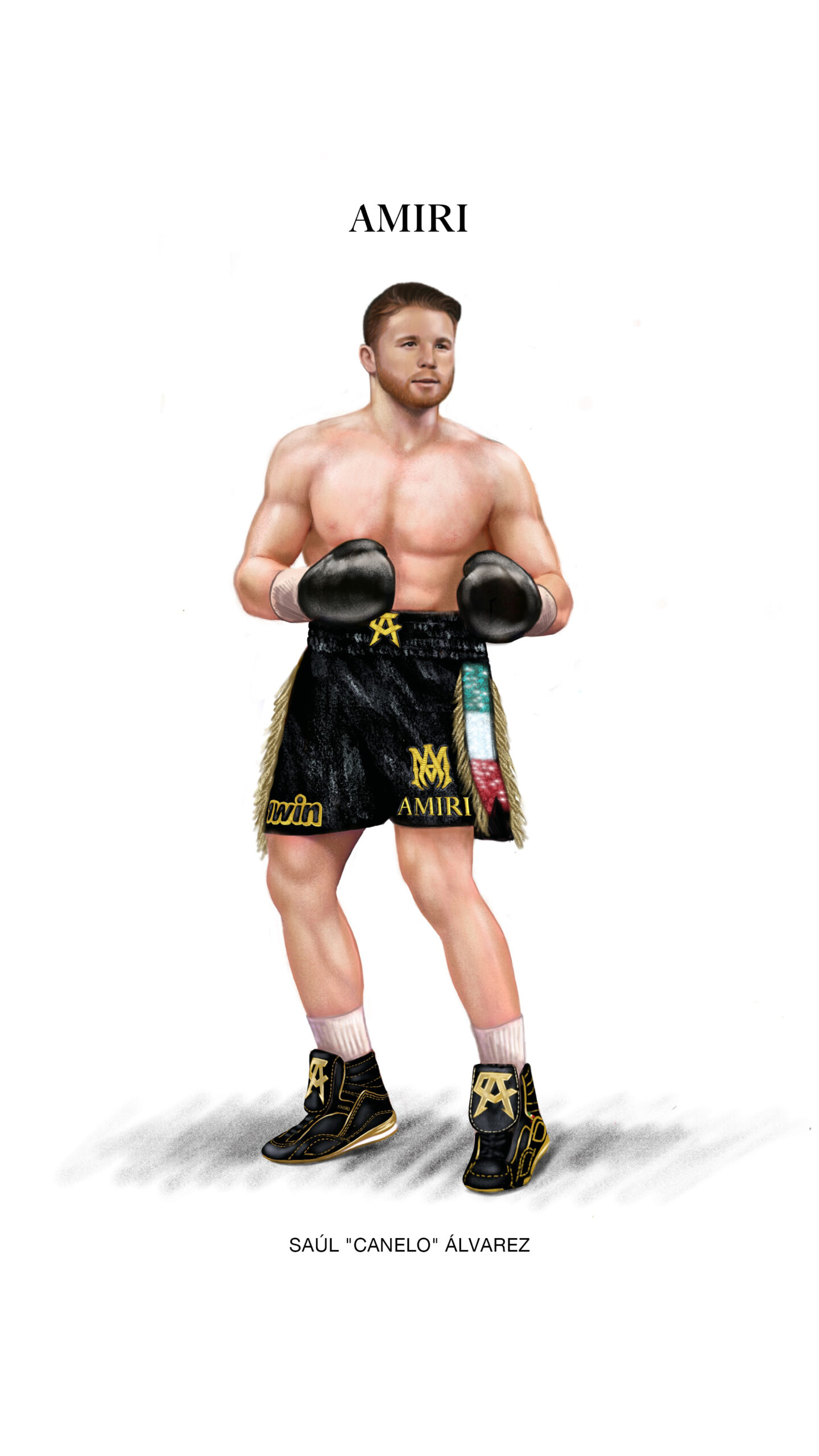 Cette tenue rend hommage aux racines mexicaines du champion tout en reflétant la philosophie AMIRI : allier luxe artisanal, détails flamboyants et influence street-culture. Elle s’impose comme un statement visuel fort, à la hauteur de ce combat annoncé comme « once in a lifetime ».