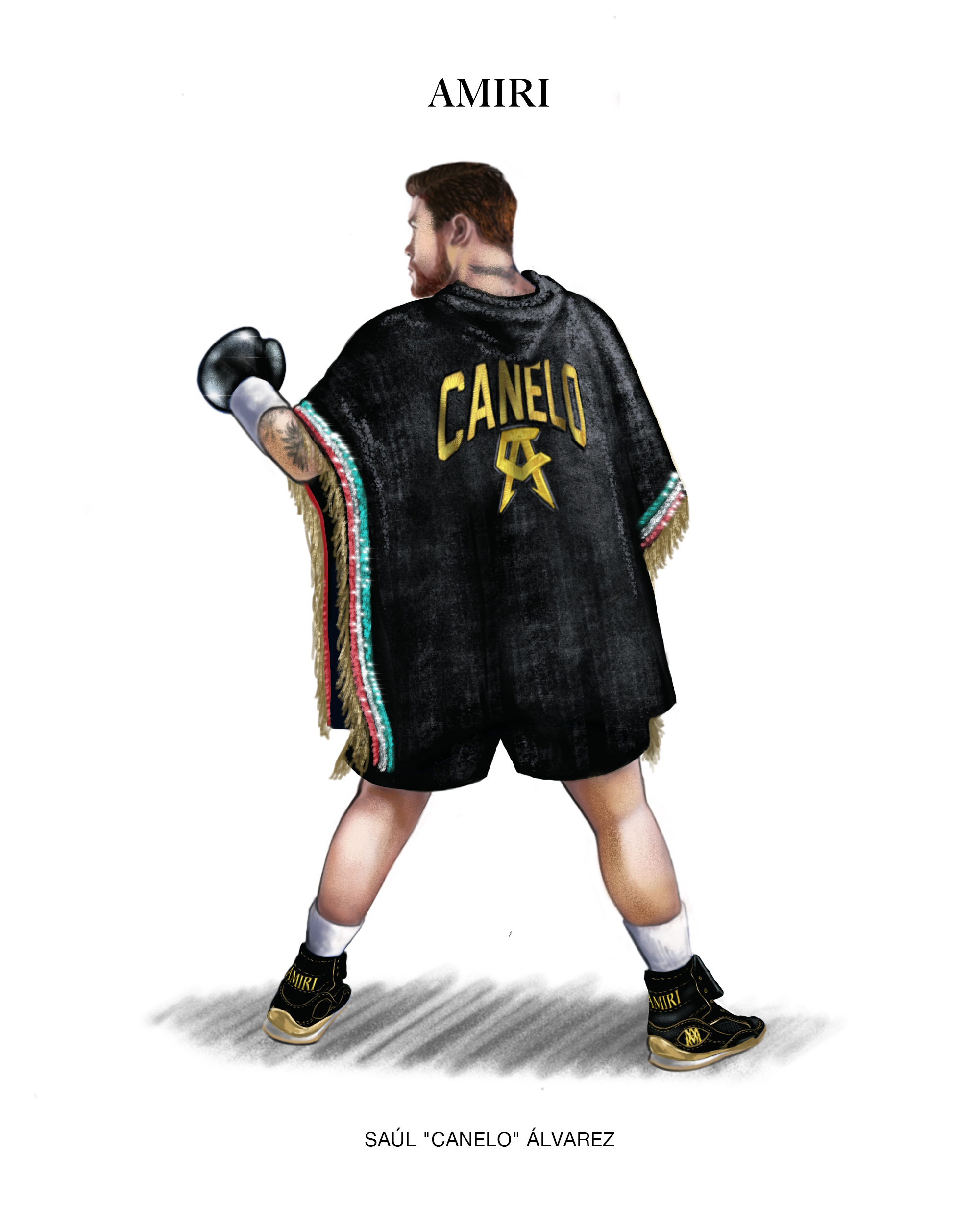 Conçue par le directeur artistique Mike Amiri en collaboration directe avec Canelo, cette création illustre la fusion entre l’identité du boxeur et l’ADN de la maison californienne. Deux ensembles distincts ont été imaginés :