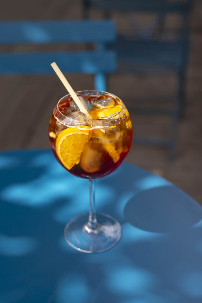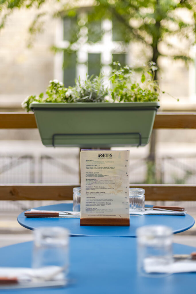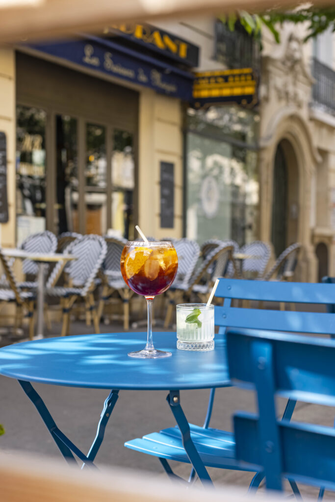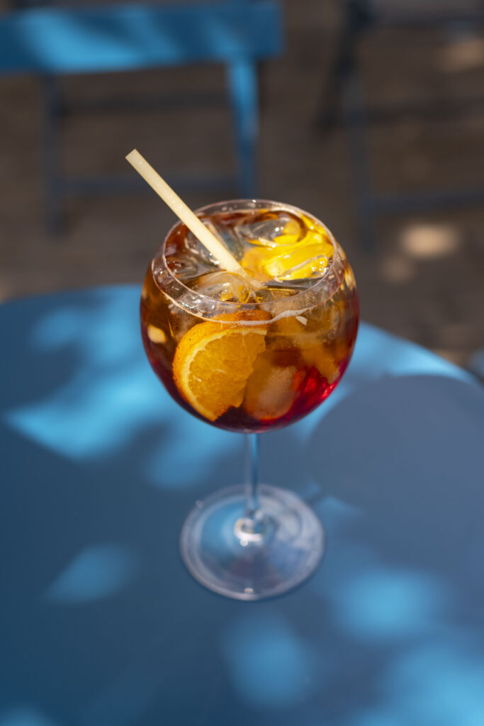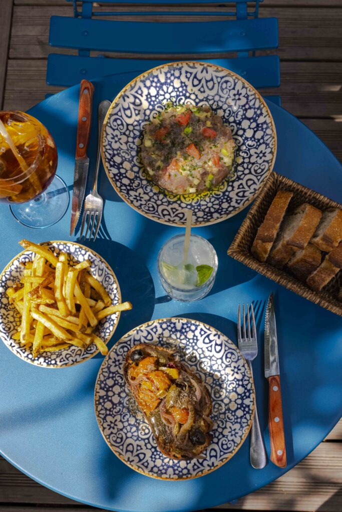 Mais Le Wagon Bleu ne s’arrête pas aux fourneaux. Le soir venu, la cabine se transforme en speakeasy vibrant : cocktails à base de spiritueux corses — comme le Maquis Sour au Cap Corse Mattei et liqueur de myrte rouge — et sets de collectifs parisiens ou de jeunes artistes insulaires en live, confèrent à ce lieu caché une allure de cabaret moderne. La carte des vins, 100 % insulaire et majoritairement bio, signée Christophe Poligani, parachève l’expérience en exaltant les cépages corses : “Minò” en rosé (6,5 €), “Genovese” en blanc (8 €), ou “Les soiffards” en rouge (8,5 €).