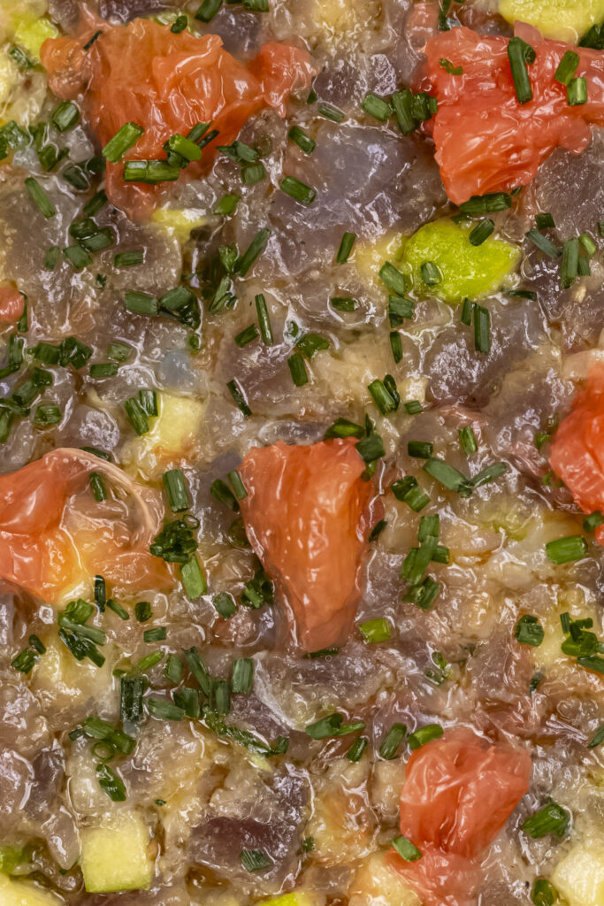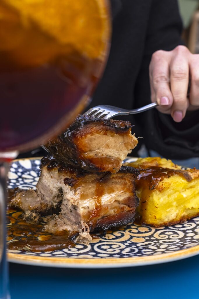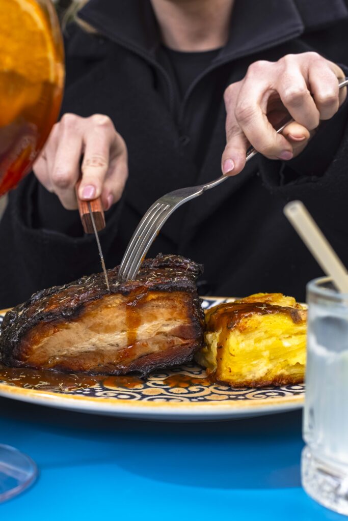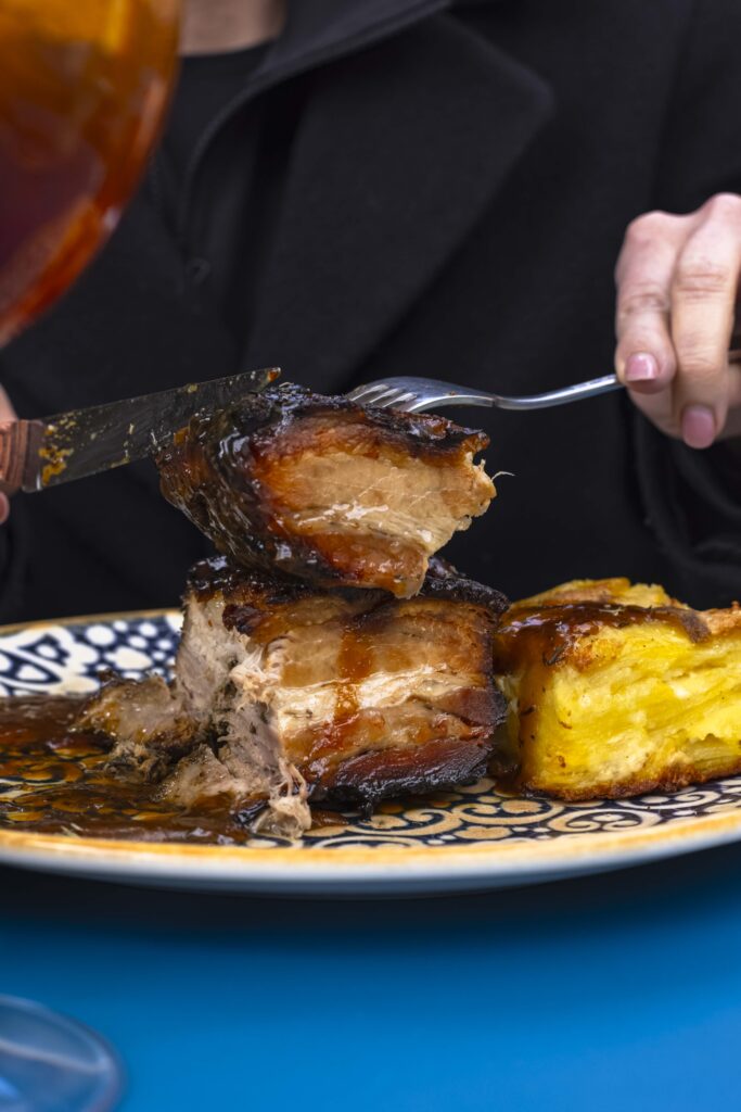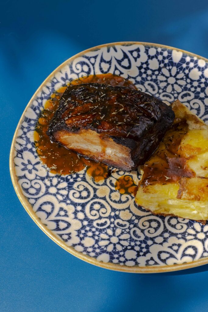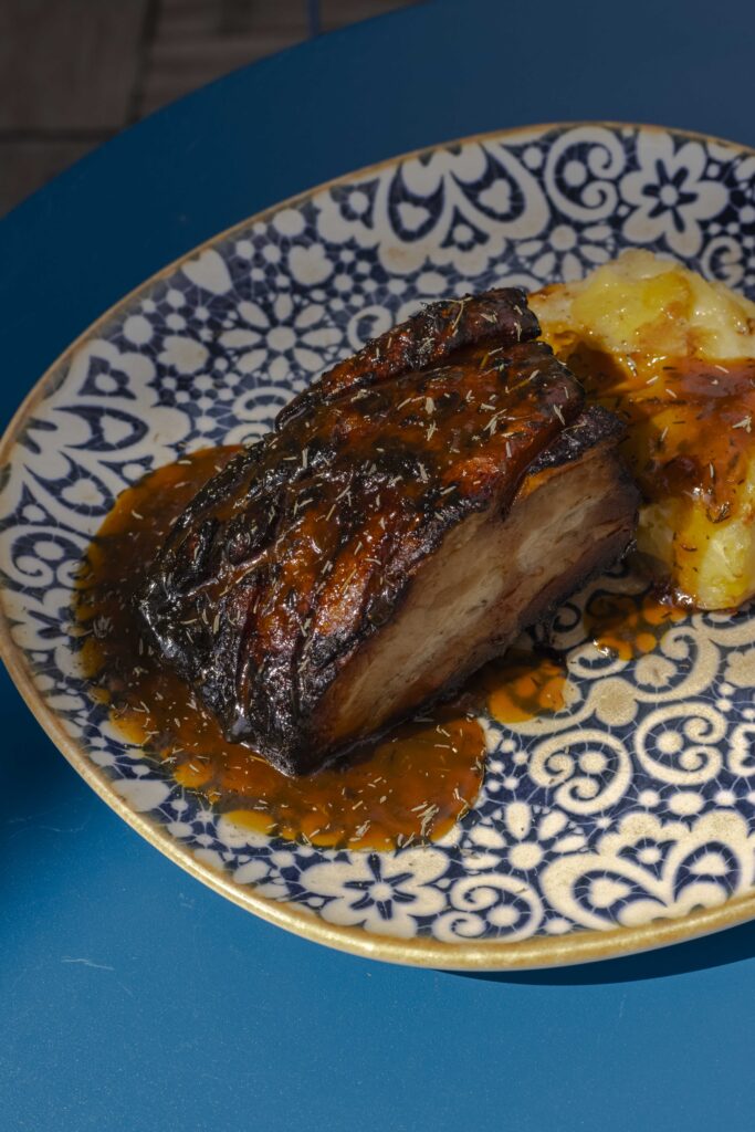 La carte, écrite en dialecte du terroir, fait dialoguer finesse et rusticité. Les beignets de fromage frais corse de Maria Franchi à Sarrola (10 €) ou le houmous à la châtaigne (9 €) flattent le palais avec des notes douces-amères qui évoquent les forêts de Castagniccia. En plat, le veau tigré de l’élevage Abbatuci en saucisse-purée (20 €) et l’effiloché de cochon signé Louis Ospital (24 €) imposent une identité forte et charpentée, tandis que le pastizzu au caramel de clémentine (9 €), flan traditionnel corse, achève le repas avec chaleur et moelleux.