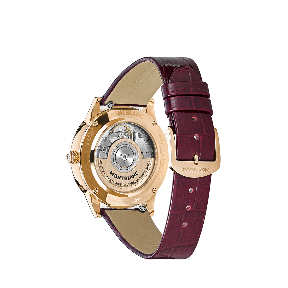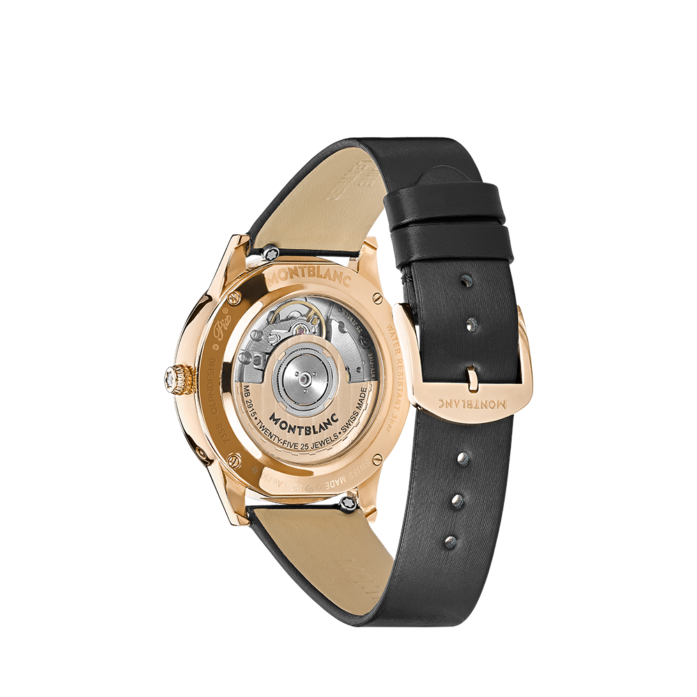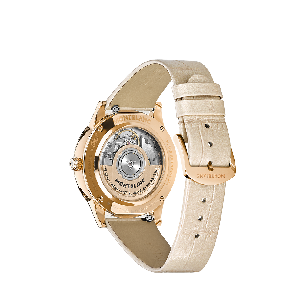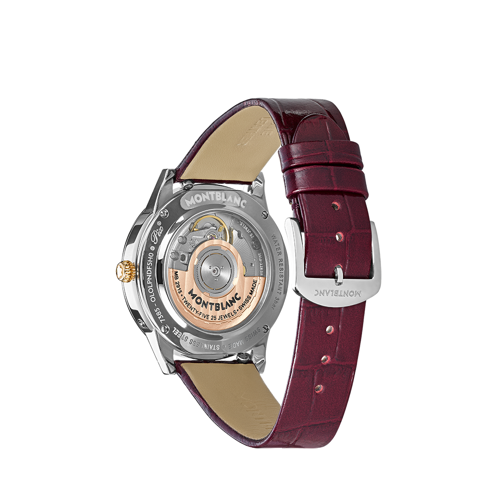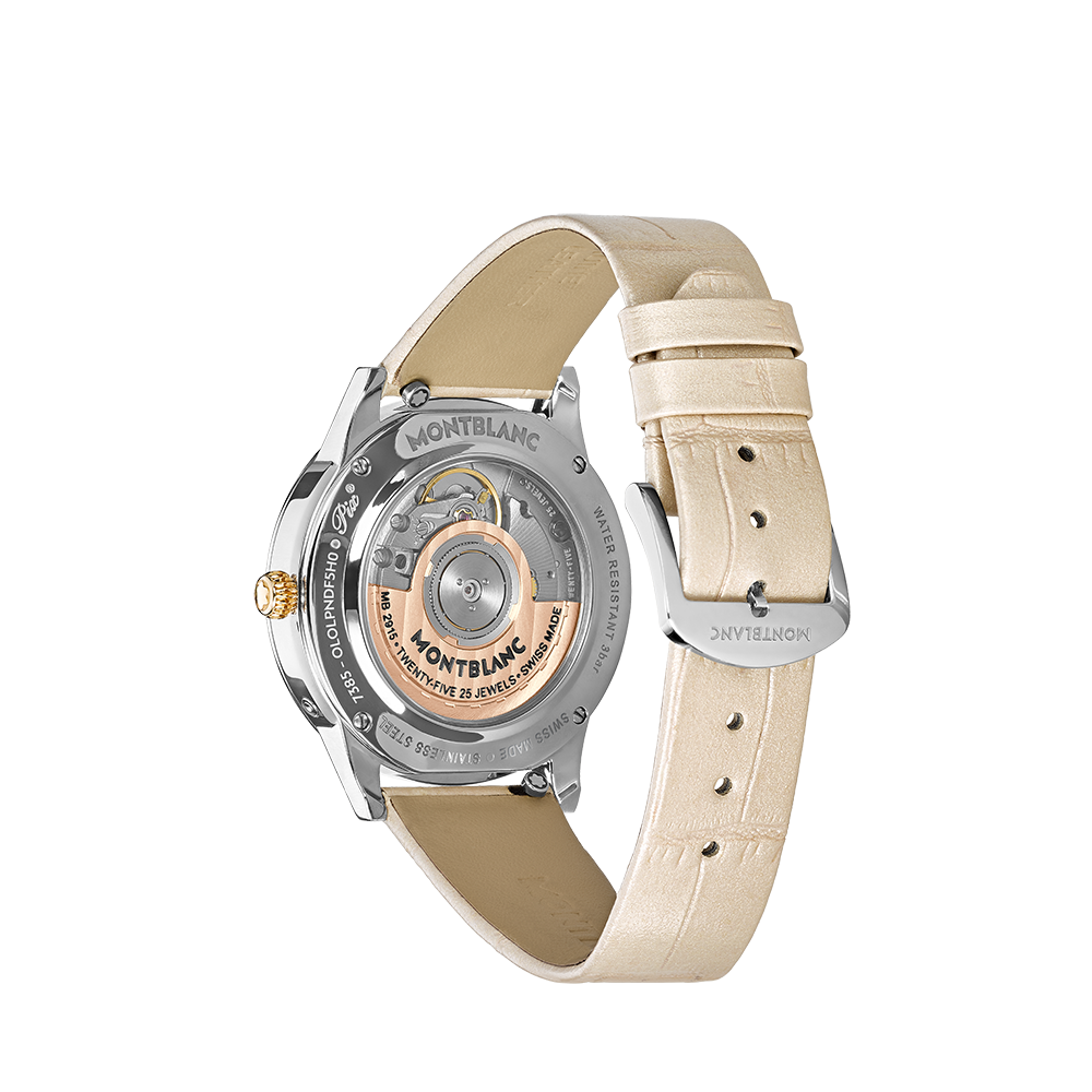 Disponible en version bimétallique (acier & or rose) ou en or rose intégral 18 carats, la Bohème Perpetual Calendar adopte un boîtier de 36 mm idéalement proportionné pour le poignet féminin. Sur le cadran, quatre sous-cadrans disposés avec une harmonie millimétrée révèlent jours, date, mois, années bissextiles et phases de la lune — le tout animé par le calibre automatique MB 29.15, précis jusqu’en 2100.
