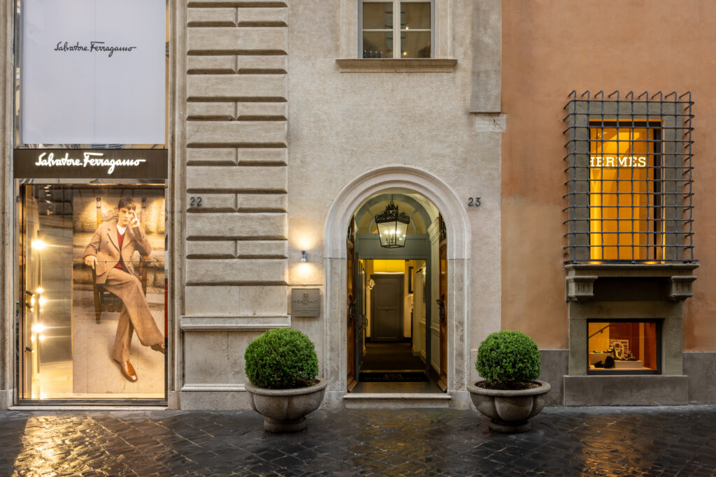 À quelques pas de ce grand théâtre baroque, l’enseigne discrète de Portrait Roma cligne comme un clin d’œil cinémascope. Installé dans la maison particulière de Salvatore Ferragamo sur la Via Condotti, l’hôtel – tout juste honoré d’une Clef Michelin – déroule, sur quatre étages, la mémoire feutrée de la Dolce Vita : clichés Magnum des divas en gants d’opéra, croquis d’escarpins commandés par Ava Gardner, grains d’archives qui murmurent encore la voie lactée des années 50.