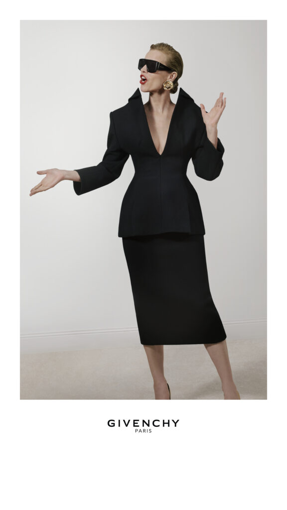 Loin de la pose hiératique, la campagne privilégie des gestes non posés, des éclats de rire et des moments de conversation, brouillant la frontière entre coulisses et image finale. Ce choix marque une rupture stratégique avec l’héritage plus sombre et dramatique d’Alexander McQueen dont Burton fut l’alter ego créatif pendant plus d’une décennie. Chez Givenchy, elle propose une approche plus fluide, intime et inclusive, alignée avec les attentes contemporaines d’authenticité.