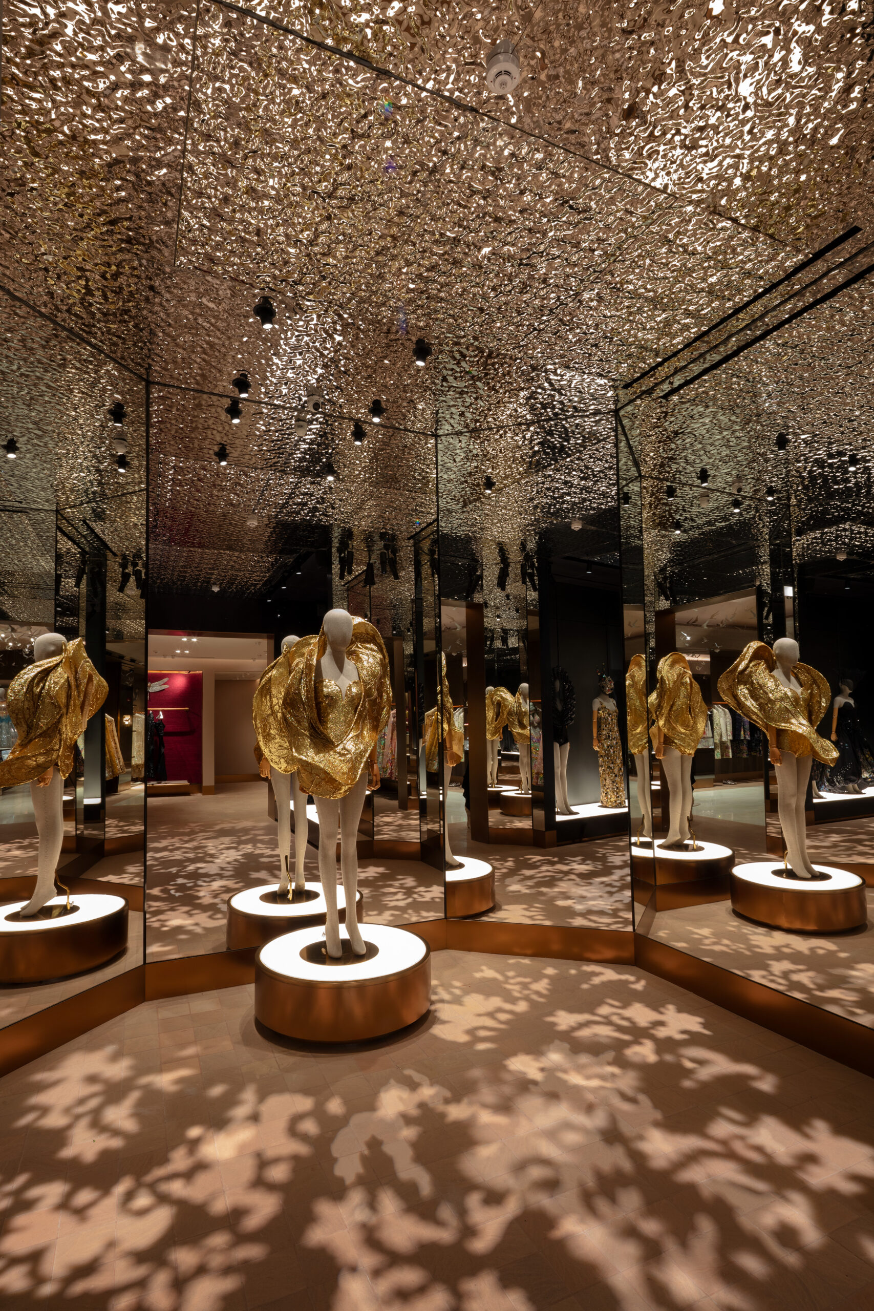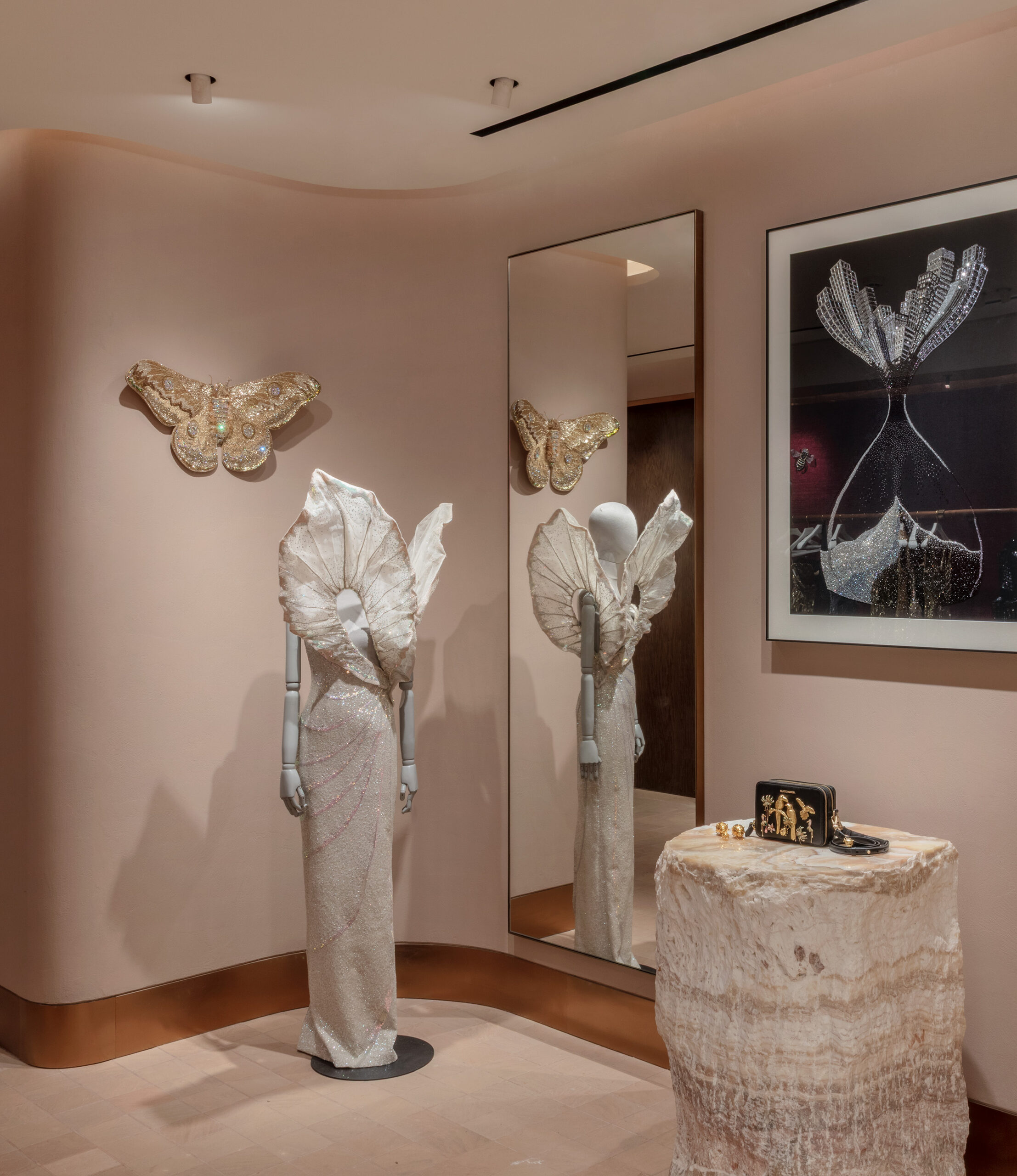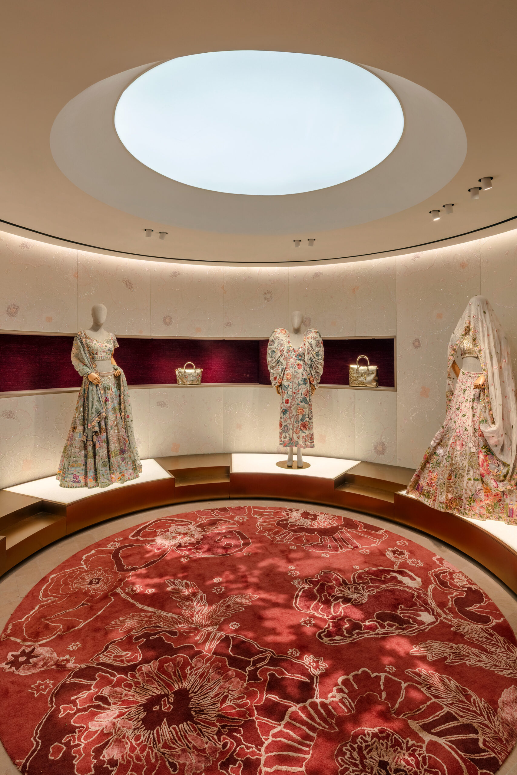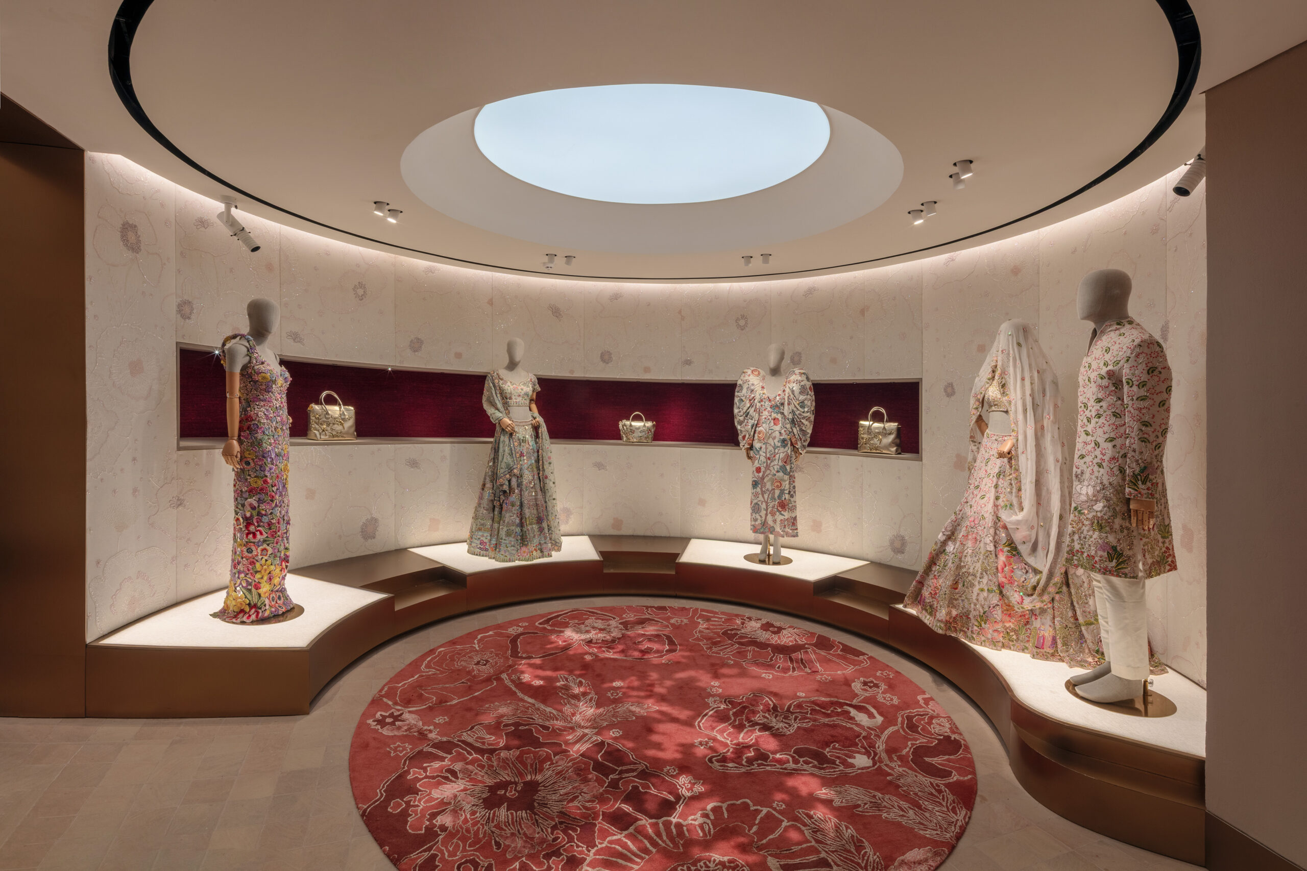 Connu pour ses présentations sur le calendrier officiel de la Paris Haute Couture Week, Rahul Mishra transpose ici son univers poétique et artisanal dans une scénographie immersive. Loin du simple concept store, la Maison se veut sanctuaire de l’artisanat : chaque espace raconte une histoire, célébrant la précision des broderies, la lenteur du geste et l’excellence du savoir-faire qui fondent l’identité du créateur.