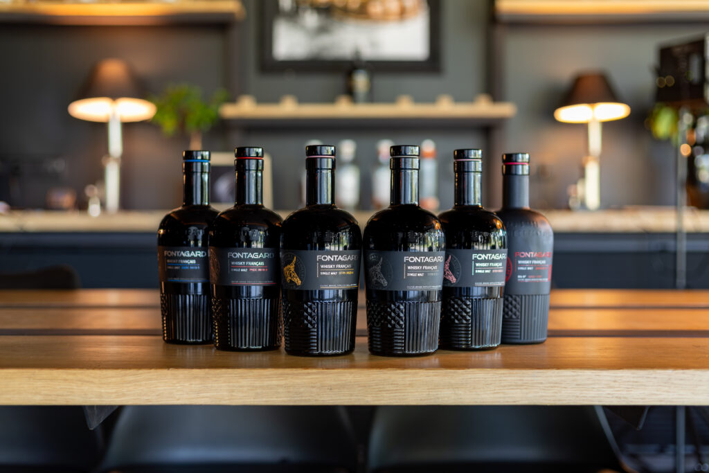 Fontagard a développé un whisky Single Malt 100 % français, brassé, distillé et vieilli sur place. Dix alambics en cuivre de 25 hectolitres permettent une double distillation traditionnelle, garantissant des distillats d’une grande finesse. Les fûts – neufs ou ayant contenu cognac, Pineau, vins de Bordeaux ou Sauternes – sculptent des profils aromatiques riches, où se croisent notes boisées, fruitées et épicées. Résultat : des expressions variées, allant de la fraîcheur des jeunes eaux-de-vie à des whiskies plus complexes, tels que l’édition limitée DMGR 9918-11 imaginée par Dominique Granchère, aux arômes intenses de fruits rouges et de bois fumés.