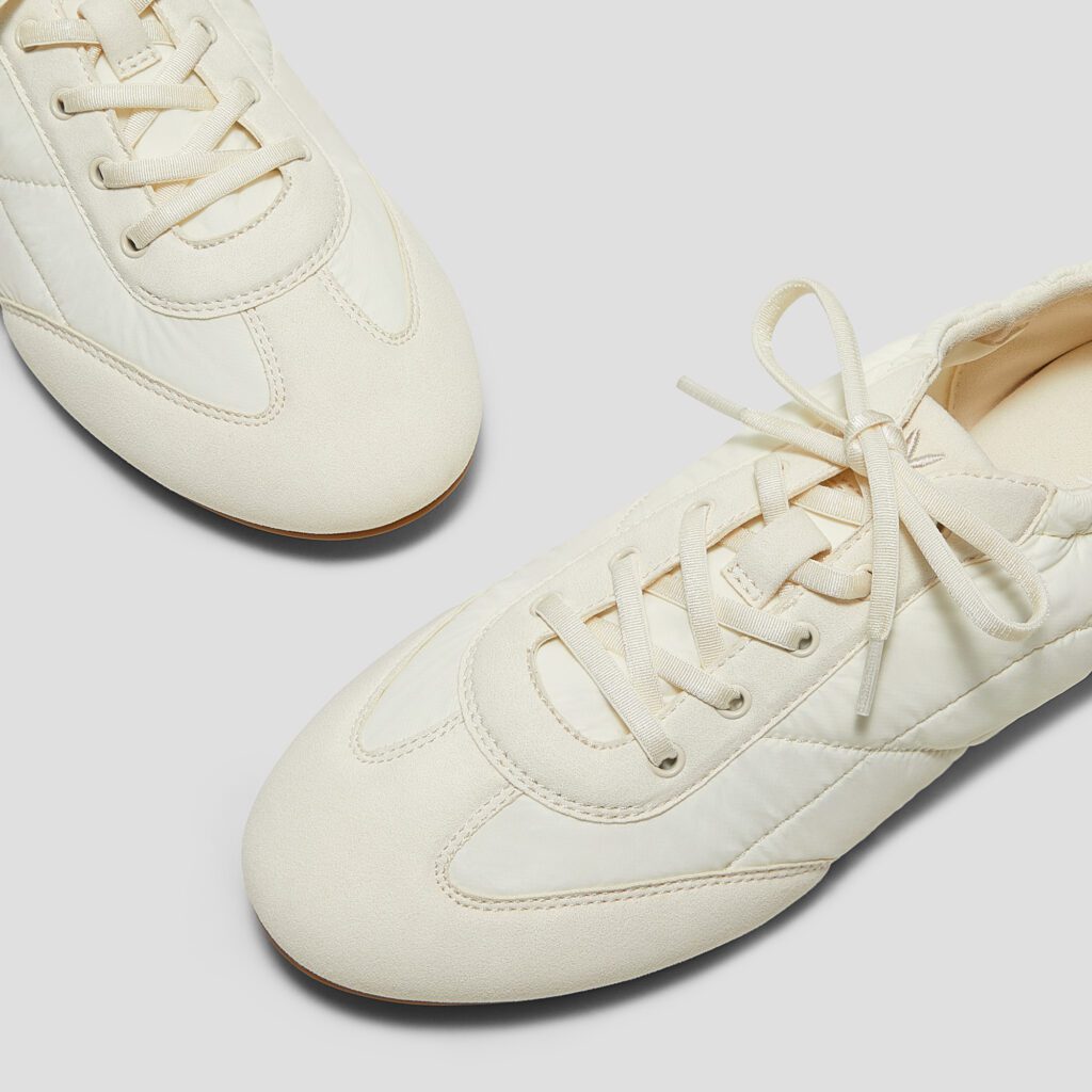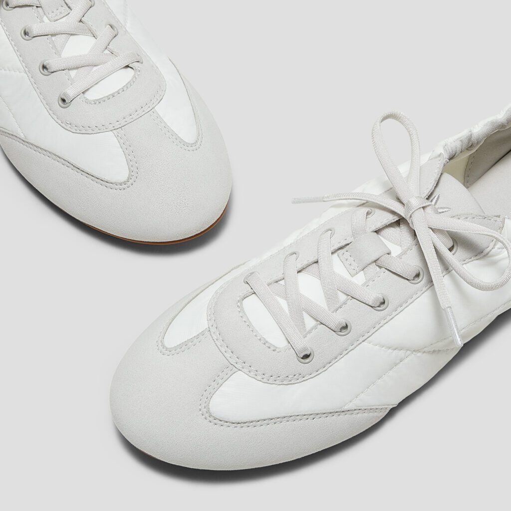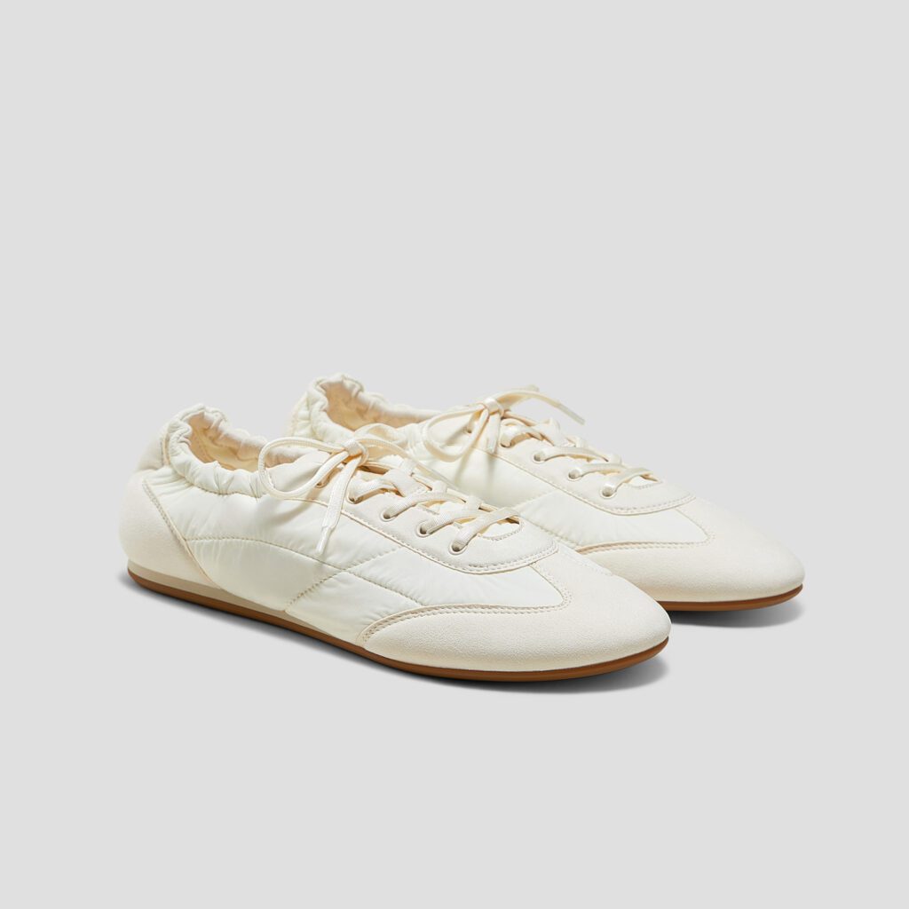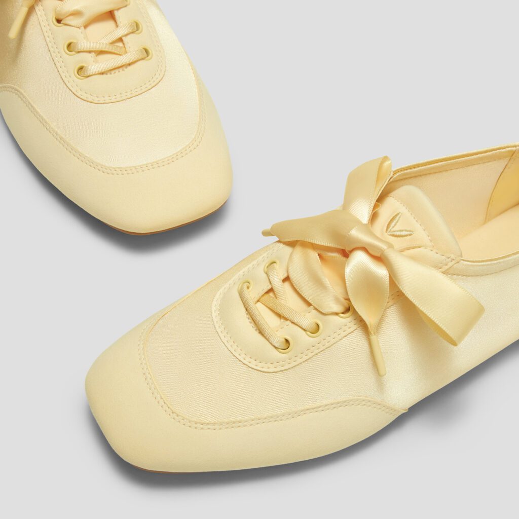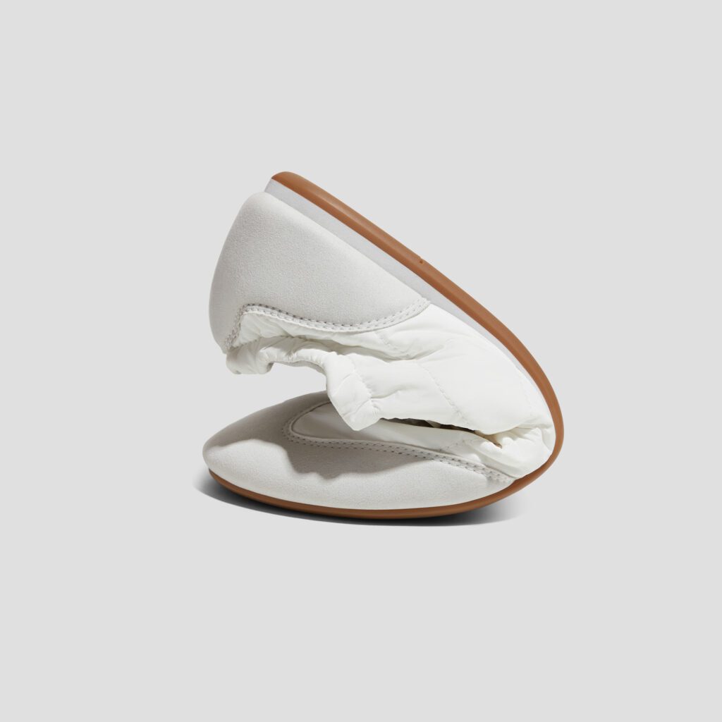 Inspirée à la fois par l’esthétique rétro des années 70 et par la grâce du ballet, la Yancy introduit un design hybride. Avec son bout rond revisité et sa silhouette affinée, elle incarne les tendances majeures de la saison : profils fins, semelles discrètes et confort “barefoot”. Conçue en Re-Nylon légèrement rembourré, elle est lavable en machine, ultra-légère, et se glisse facilement dans un sac — idéale pour un usage quotidien urbain.