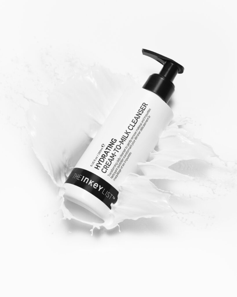 Le Hydrating Cream-to-Milk Cleanser se distingue par une texture crème qui se transforme en lait au contact de l’eau. Contrairement aux démaquillants classiques parfois agressifs, il nettoie en profondeur sans assécher grâce à un 5 % de lait de riz aux propriétés apaisantes et à de l’acide hyaluronique ionisé qui reste fixé à la peau, garantissant 24 h d’hydratation prouvée cliniquement. Sa formule, non comédogène et sans silicones, est pensée pour même les peaux les plus sensibles. Prix : 15 € (180 ml) / 7,50 € (50 ml).