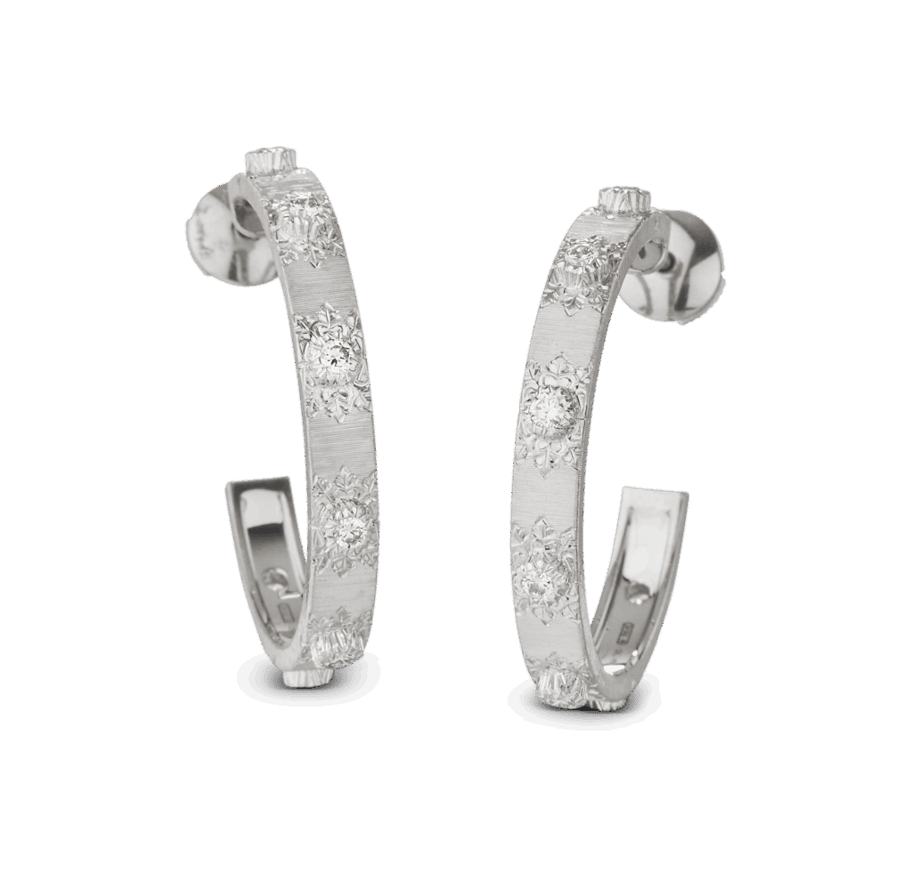 En enrichissant ses collections phares de ce nouveau geste créatif, Buccellati transforme la créole en icône joaillière, capable de traverser les siècles sans perdre sa pertinence. À mi-chemin entre intemporalité et distinction, ces anneaux traduisent l’ADN de la maison : une orfèvrerie précieuse, sculptée comme une dentelle, qui reste unique dans le paysage de la haute joaillerie contemporaine.