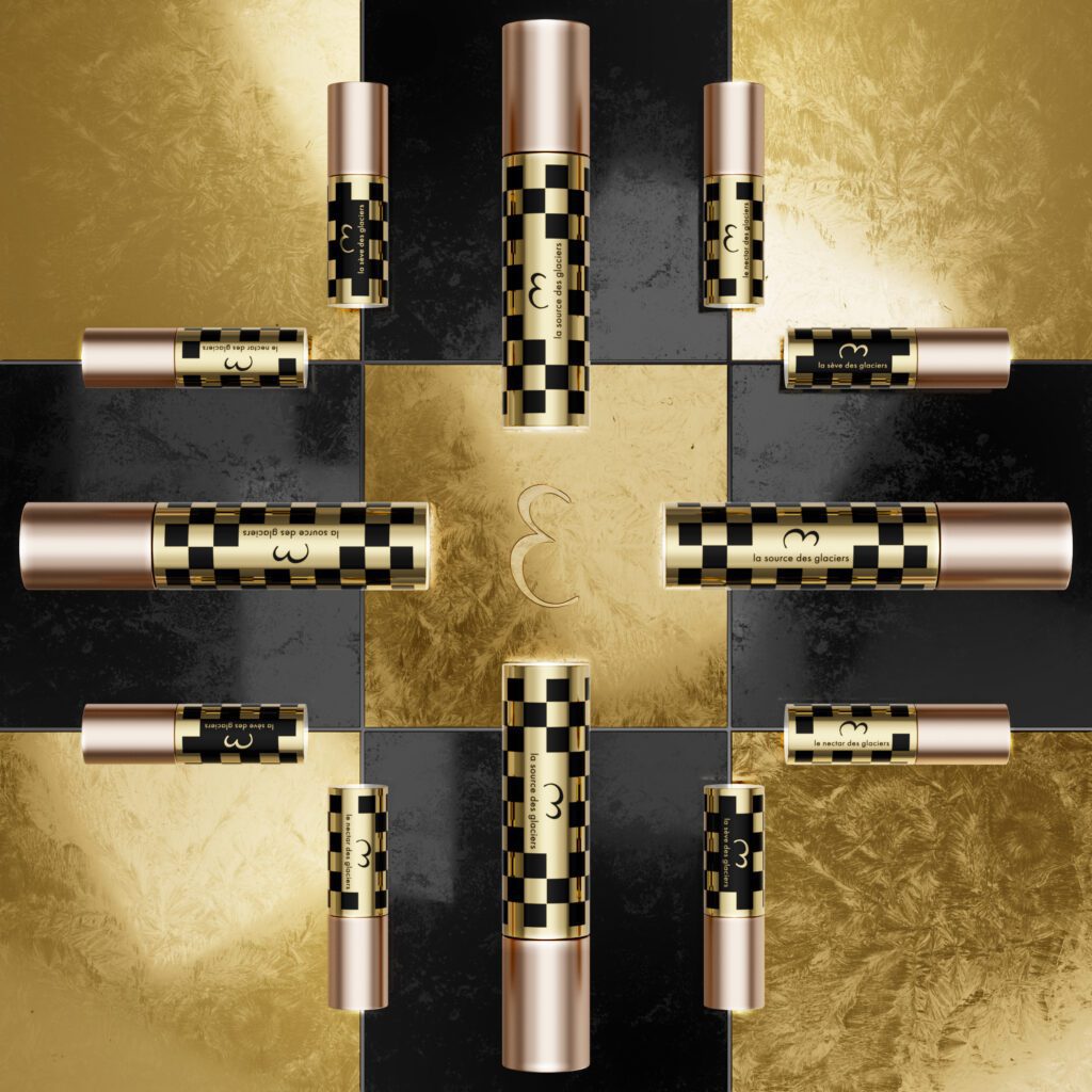 Côté soin, le triptyque La Sève, La Source et Le Nectar des Glaciers concentre 69 % d’actifs issus de l’Elixir des Glaciers : ADN d’esturgeon, plantes polyactives, trésors de la ruche, et une technologie de diffusion en micro-gouttes qui métamorphose la peau en quatre semaines. Inspirée de la chronobiologie, cette cure transforme l’épiderme au fil du jour et de la nuit — illumine le matin, lisse le soir, régénère la nuit — dans une gestuelle ultra-sensorielle.