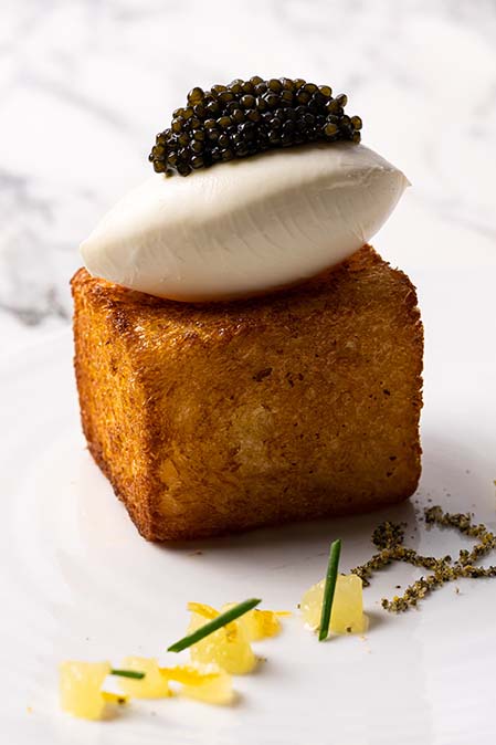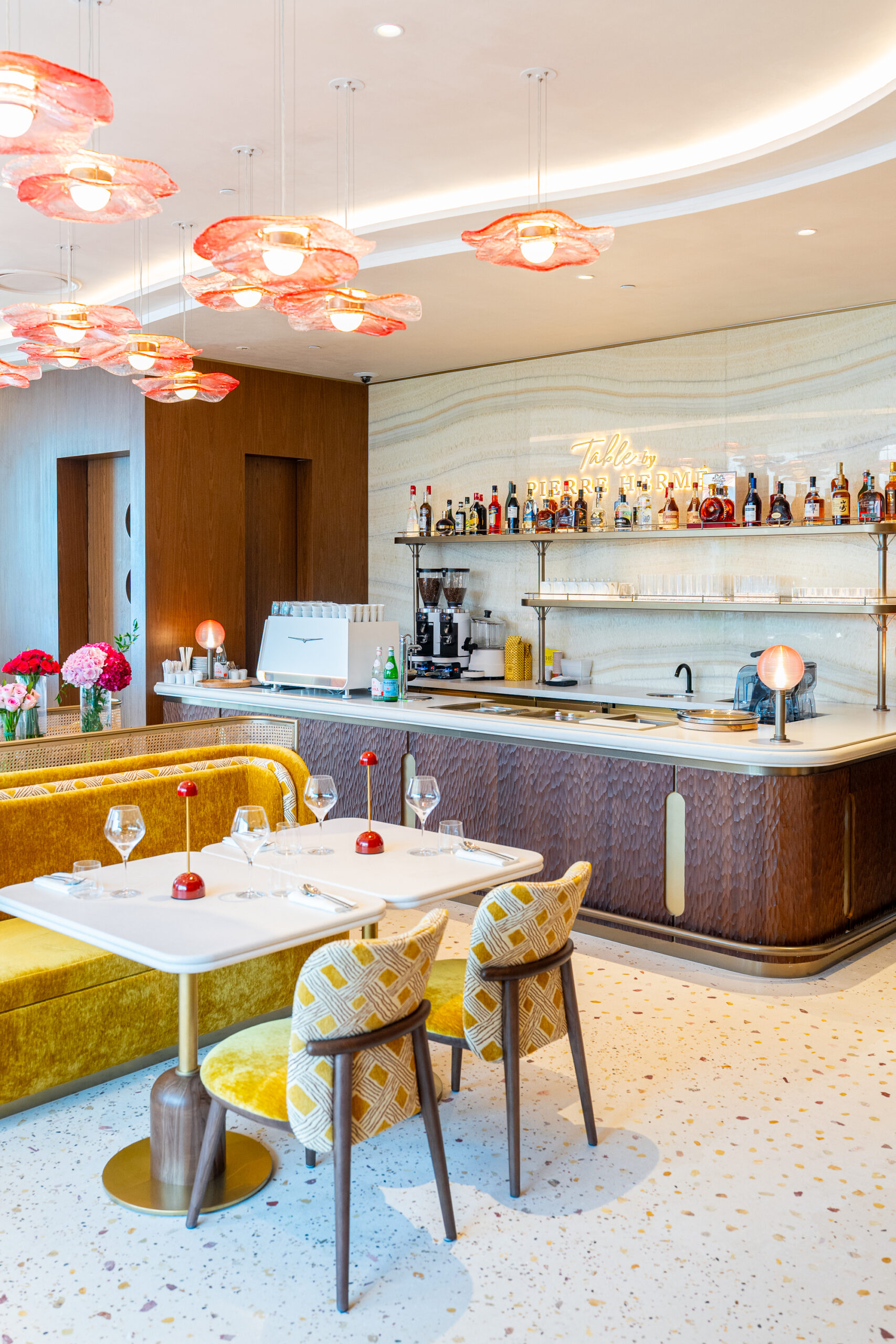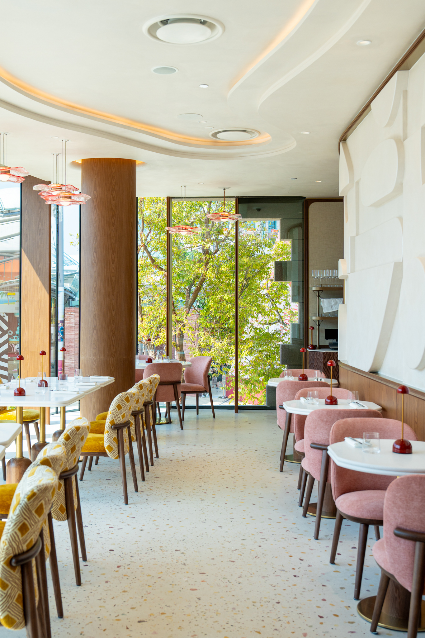 Au premier étage, la Table by Pierre Hermé redéfinit l’art de recevoir à la française. Cette salle intimiste de 67 couverts et sa terrasse adjacente offrent une carte salée et sucrée pensée comme un dialogue avec les convives. Entre croque-monsieur Ispahan, desserts à l’assiette et bubble teas réinventés, chaque plat est une ode à la mémoire sensorielle et à l’émotion gustative.