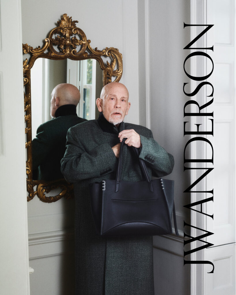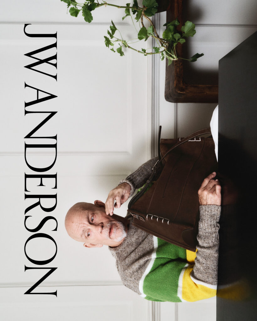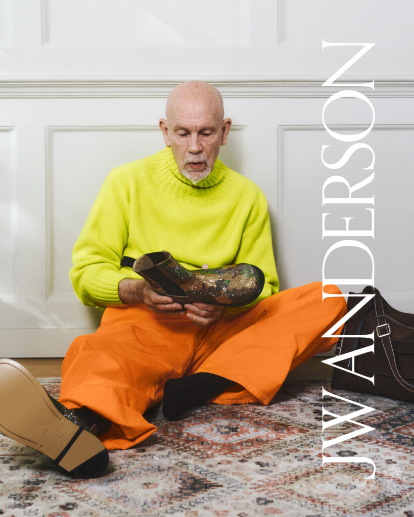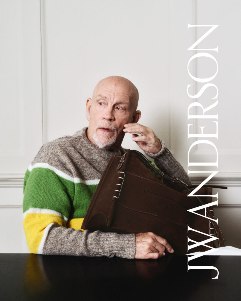 La campagne, photographiée par Heikki Kaski et stylée par Benjamin Bruno, s’inscrit dans la collection Resort Spring-Summer 2026 : un vestiaire de matières choisies — maille « spun from the finest yarns », denim japonais façonné avec des spécialistes, Chelsea boots enjolivées de strass vert militaire — qui réaffirme la grammaire JW Anderson : tactilité, techniques « considered », et cette manière de tordre les codes avec sérieux sans se prendre au sérieux. En casting d’image, John Malkovich — intellect du cinéma, icône au flegme pince-sans-rire — apporte la profondeur d’un regard et l’ironie d’une posture : parfait contrechamp au fétichisme de l’objet-mode.