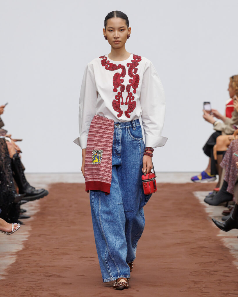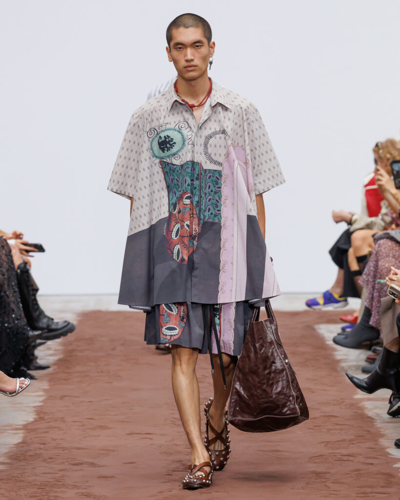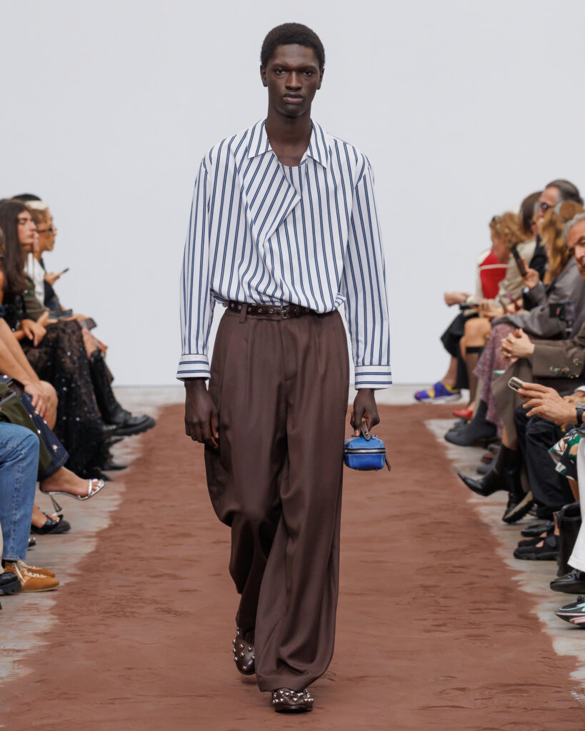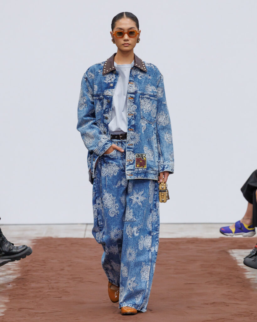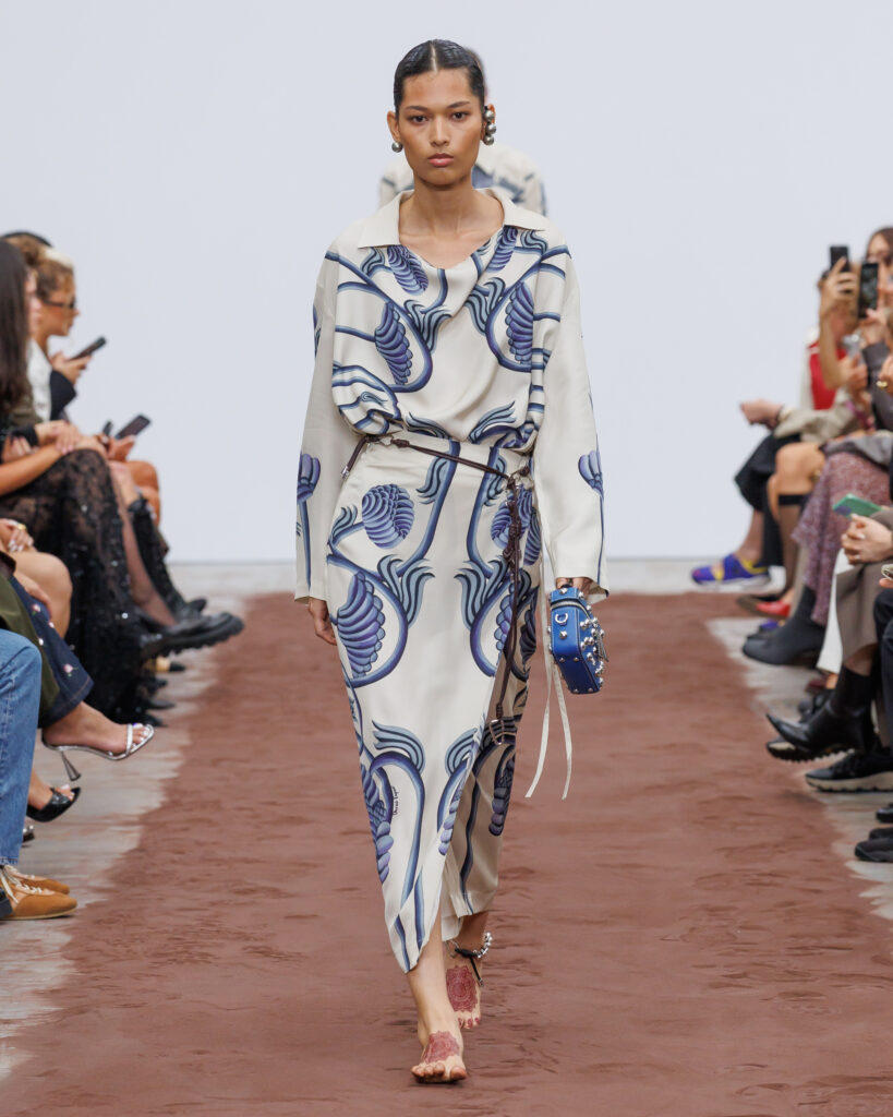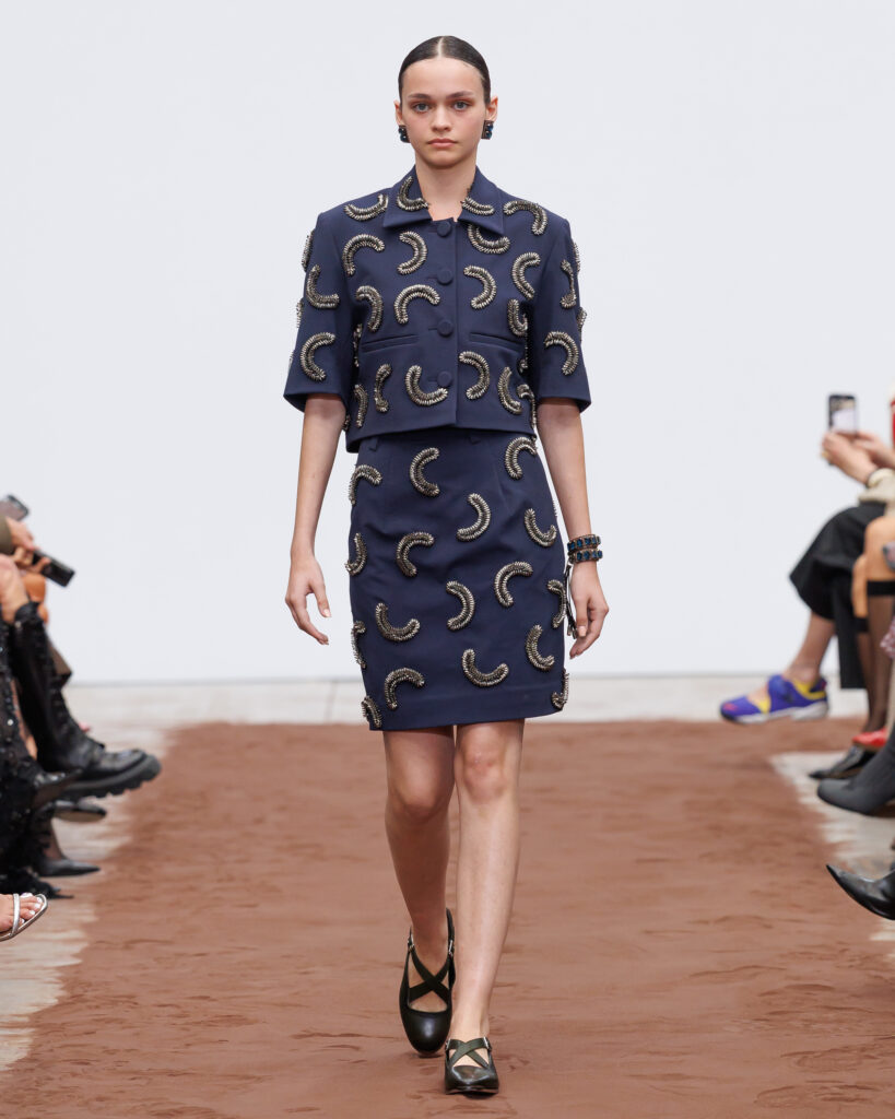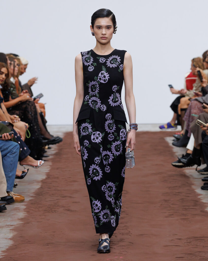 L’énergie visuelle et sonore du défilé est amplifiée par les collaborations avec la marque finlandaise Paloceras, créatrice de lunettes sculpturales, et avec l’artiste helvético-népalaise Aïsha Devi, dont la musique enveloppe l’espace de rythmes hypnotiques. Ensemble, ils transforment la collection en une expérience synesthésique où la mode devient une architecture vivante des émotions, du temps et de la lumière.