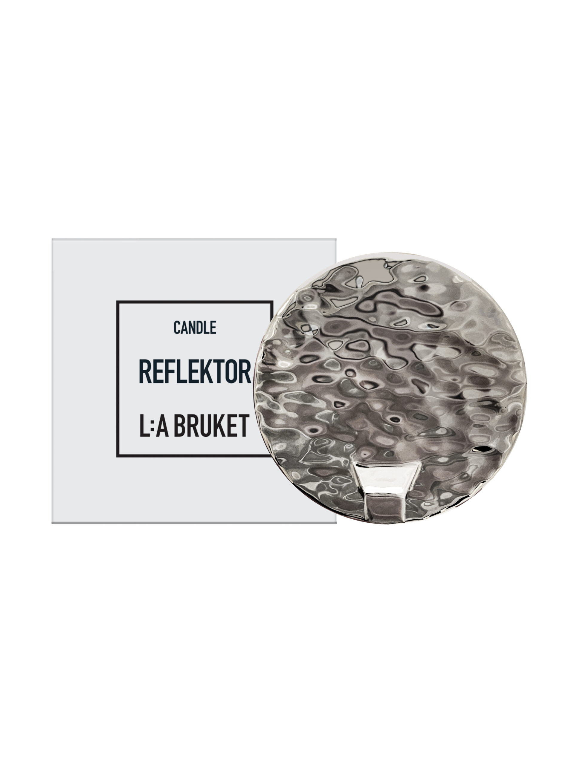 Inscrit dans la grammaire d’objets du quotidien chère à la maison suédoise, le Candle Reflektor — couvercle et réflecteur — intensifie la lumière de la flamme. Son zamac poli reflète un miroitement inspiré de la mer du Kattegat, tandis que sa forme évoque la sculpture suédoise traditionnelle, métal ondulé coulé à la main en contraste avec le verre lisse. C’est un geste discret mais juste : amplifier, plutôt qu’illustrer.
