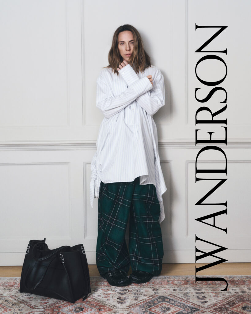 Après John Malkovich, c’est au tour de Melanie Chisholm — alias Mel C, l’éternelle Sporty Spice des Spice Girls — d’incarner le Loafer Bag dans la dernière campagne de JW Anderson. Un choix de casting qui, loin de relever du hasard, traduit la stratégie singulière de Jonathan Anderson : opposer l’authenticité pop britannique au fétichisme conventionnel du luxe.