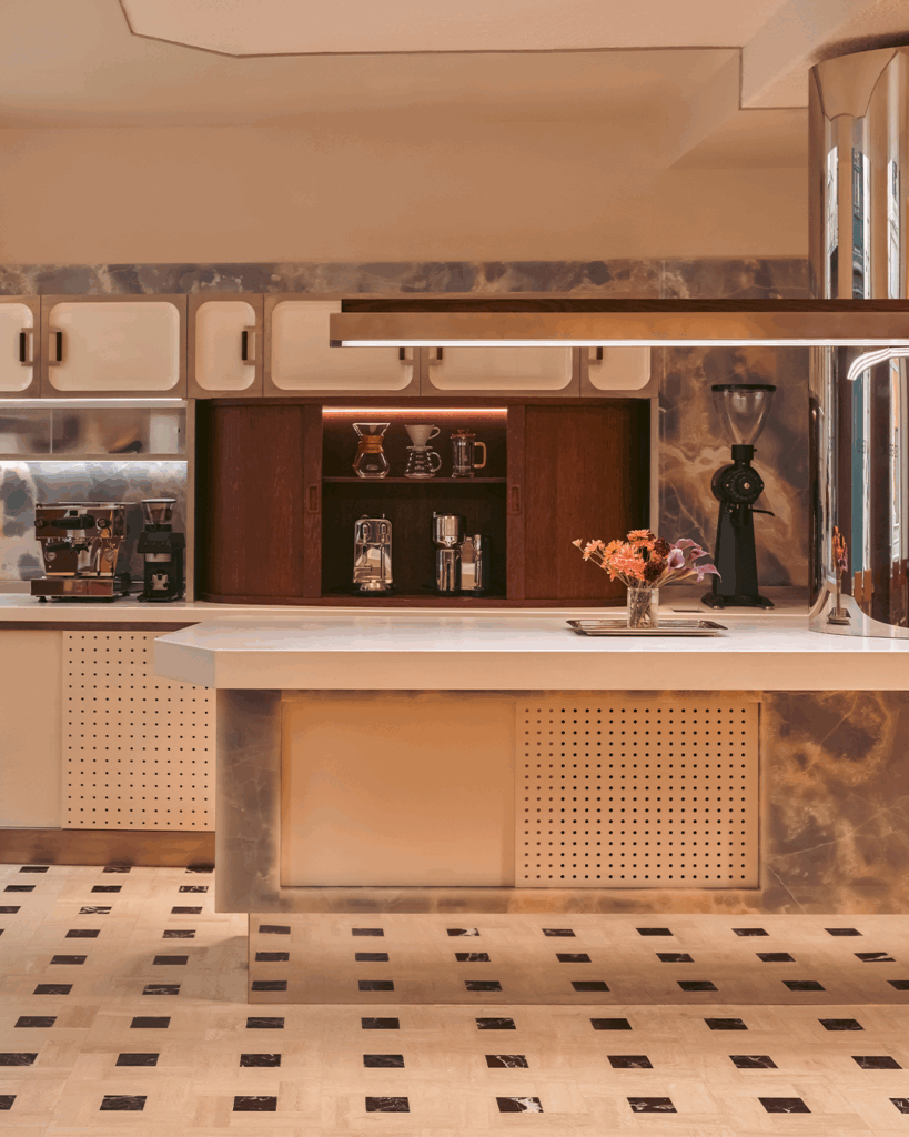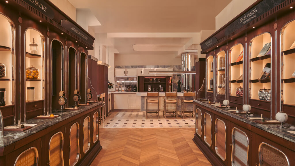 Pensée comme une maison de goût, l’adresse déploie un parcours immersif : Le Café (coffee shop à emporter ou sur place, baristas et recettes signatures), Le Patio (respiration pavée), Le Cabinet des Merveilles (introduction sensorielle aux terroirs, torréfactions et assemblages), La Cuisine (lieu de vie et d’attention personnalisée), La Galerie (chromatisme des collections), enfin Le Studio des Amis (écrin des collaborations). Cette scénographie traduit l’ADN d’explorateur-assembleur-torréfacteur, longtemps “caché dans la capsule”, désormais révélé comme un art total.