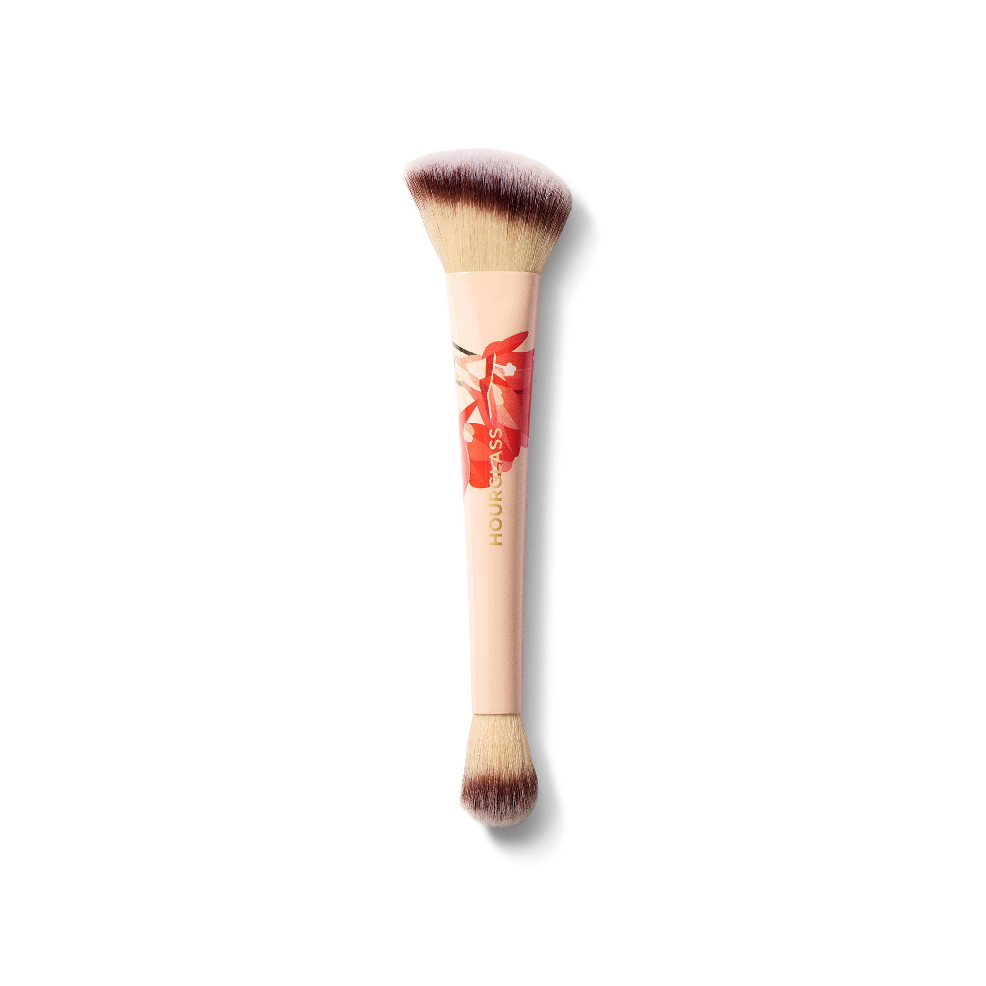 À l’intérieur, six harmonies lumineuses associent highlighter, blush et poudre bronzante. Chaque déclinaison, travaillée dans la technique marbrée signature de la maison, promet éclat et dimension. Du corail terracotta au champagne scintillant, en passant par les baies riches et les prunes veloutées, la palette propose des nuances inédites comme des best-sellers réédités. Prix public : 106 €. À cela s’ajoute un pinceau double embout en édition limitée, orné d’un design assorti (59 €).