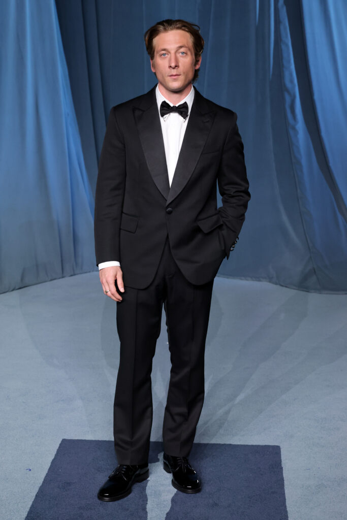 Côté masculin, Jeremy Allen White, fidèle à son allure élégante et décontractée, arborait un smoking noir à revers cranté, chemise blanche à pointes de col argentées et derbies en cuir noir, soulignés d’une montre Tambour en or jaune — un symbole d’élégance intemporelle au poignet d’un acteur au charisme brut.