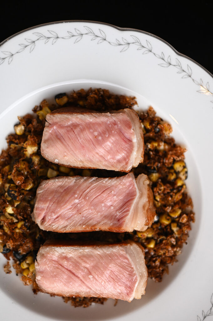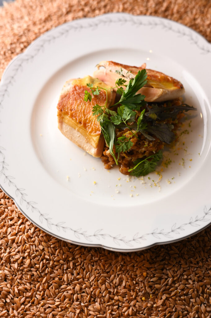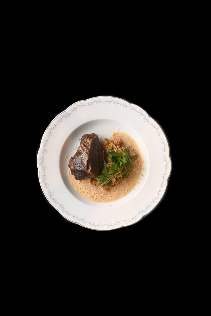 Les accompagnements proposés échappent à toute banalité. Loin des pommes sautées ou risottos de convention, Erwan Ledru développe des créations signatures : pomme Darphin au caviar, maïs grillé décomposé en textures croquantes et velouté rehaussé de vinaigre de sapin, risotto à la truffe noire et parmesan longuement affiné. Chaque élément revendique une identité gustative affirmée, une complexité de préparation qui élève l’accompagnement au rang de protagoniste culinaire. Cette approche traduit la philosophie du chef, forgée lors de son passage chez Arnaud Nicolas, Meilleur Ouvrier de France charcutier : l’excellence réside dans l’attention portée à chaque composante de l’assiette, sans hiérarchie ni compromis.
