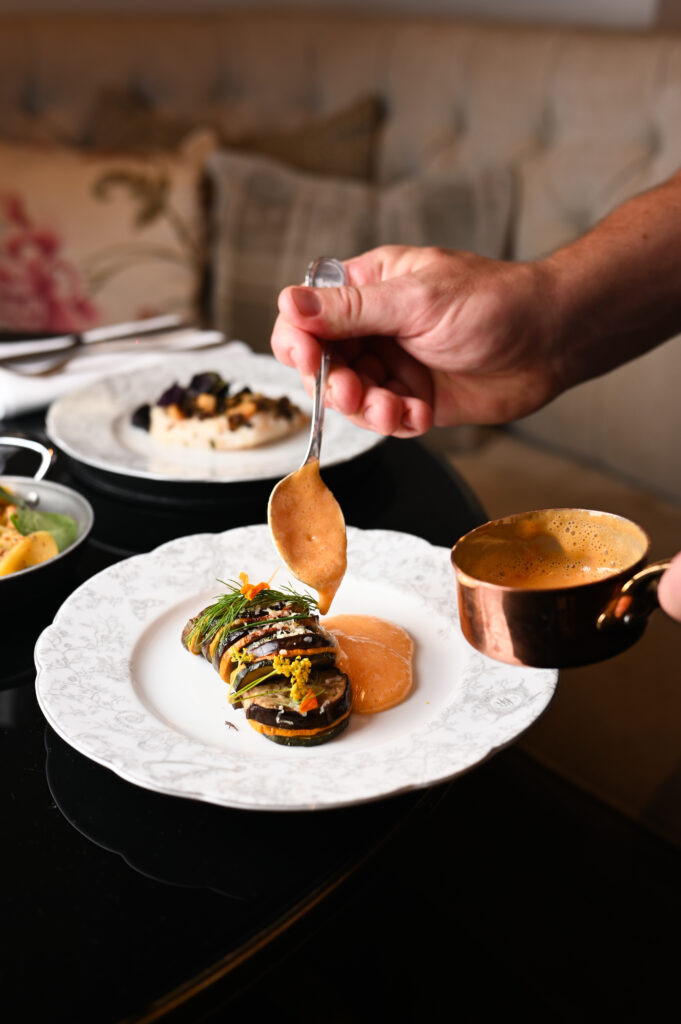 La vision culinaire d’Erwan Ledru s’inscrit dans une démarche durable et raisonnée. Certifié Écotable lors de son passage à Contraste, le chef privilégie les circuits courts, le travail de saison et le respect absolu du produit. Sa cuisine refuse la dénaturation, cherche l’évidence plutôt que la démonstration technique gratuite. « Une cuisine tournée vers la Nature, brute dans l’esprit mais très précise sur la forme », résume le chef sur le site du San Régis. Cette approche instinctive et généreuse, conjuguée à une maîtrise technique sans faille, trouve une résonance idéale dans le cadre du San Régis.