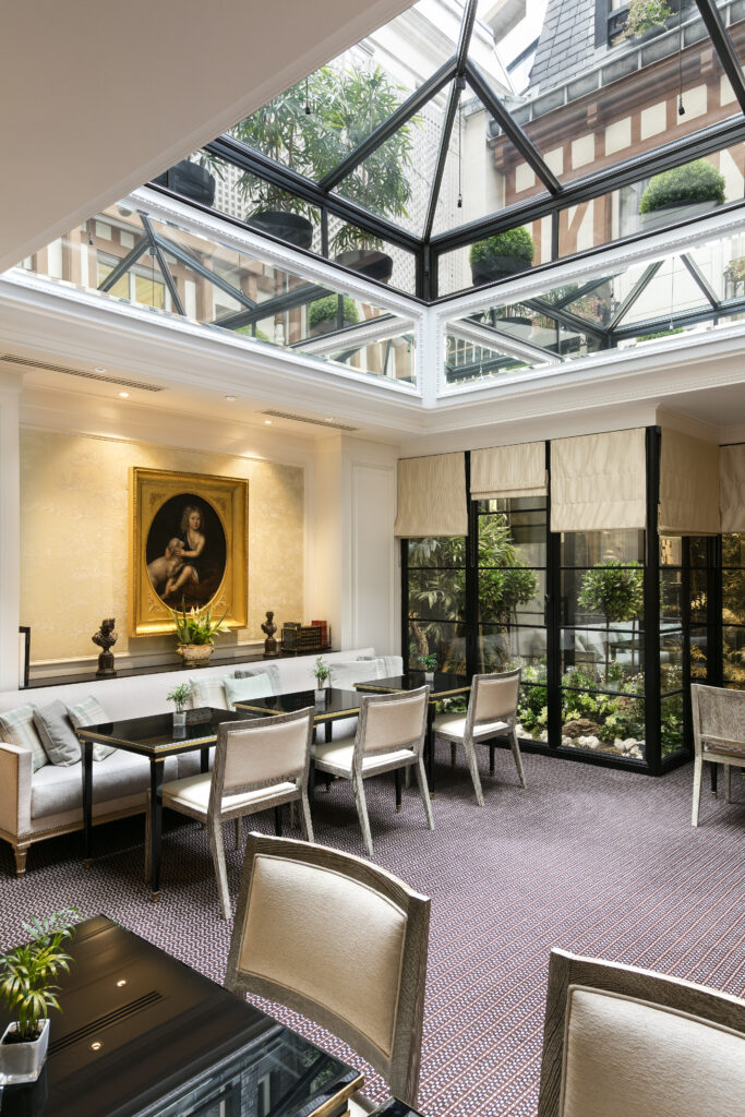 Le San Régis, lui, cultive depuis un siècle une discrétion aristocratique. Ancien hôtel particulier du XIXème siècle acquis en 1923 par Simon André Terrail, propriétaire de la Tour d’Argent, l’établissement a accueilli dans les années 1950 une partie du mobilier du George V lors de sa vente. Lauren Bacall, Romy Schneider, Gene Kelly, Jacqueline Bisset ont élu domicile dans ses 42 chambres et suites ornées de tissus Braquenié, Pierre Frey et Manuel Canovas, meublées d’antiquités Louis XV, Louis Philippe ou Régence. Depuis 1984, la famille Georges veille sur ce joyau avec une exigence patrimoniale. Sarah et Zeina Georges, filles d’Elie Georges, perpétuent aujourd’hui cette tradition d’excellence artisanale qui vaut à l’hôtel d’être régulièrement sélectionné par Travel+Leisure, Forbes Travel Guide et Andrew Harper’s Hideaway Report parmi les plus belles adresses au monde.