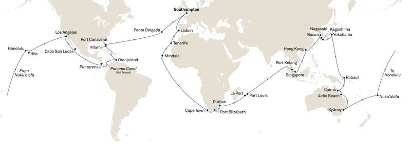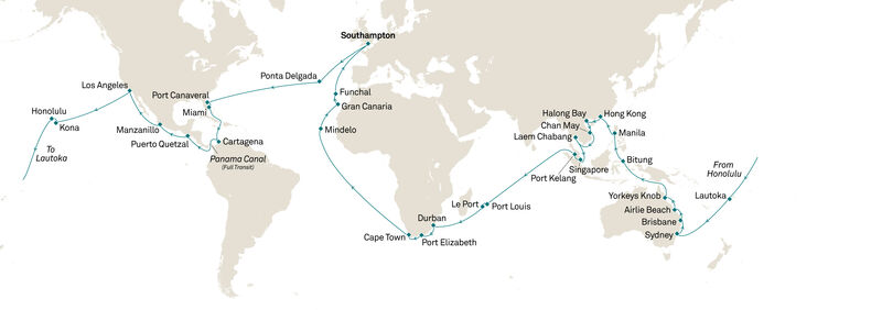 De son côté, le Queen Elizabeth embarquera vers l’est pour 113 nuits à la découverte de l’Afrique, de l’Australasie et des îles du Pacifique, avec des nuits magiques à quai au Cap, à Yokohama, à Sydney et à Honolulu.