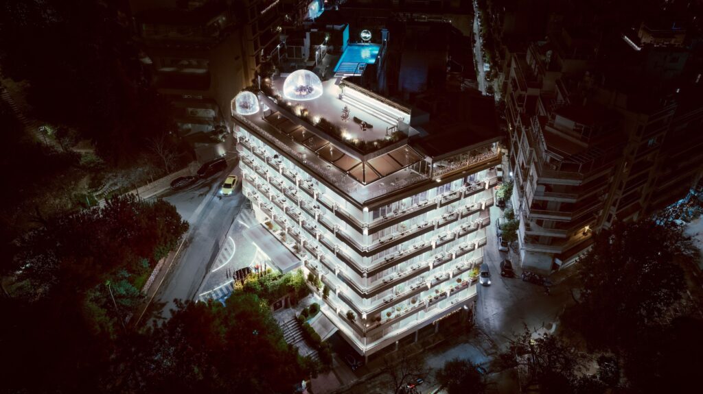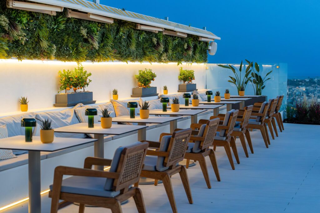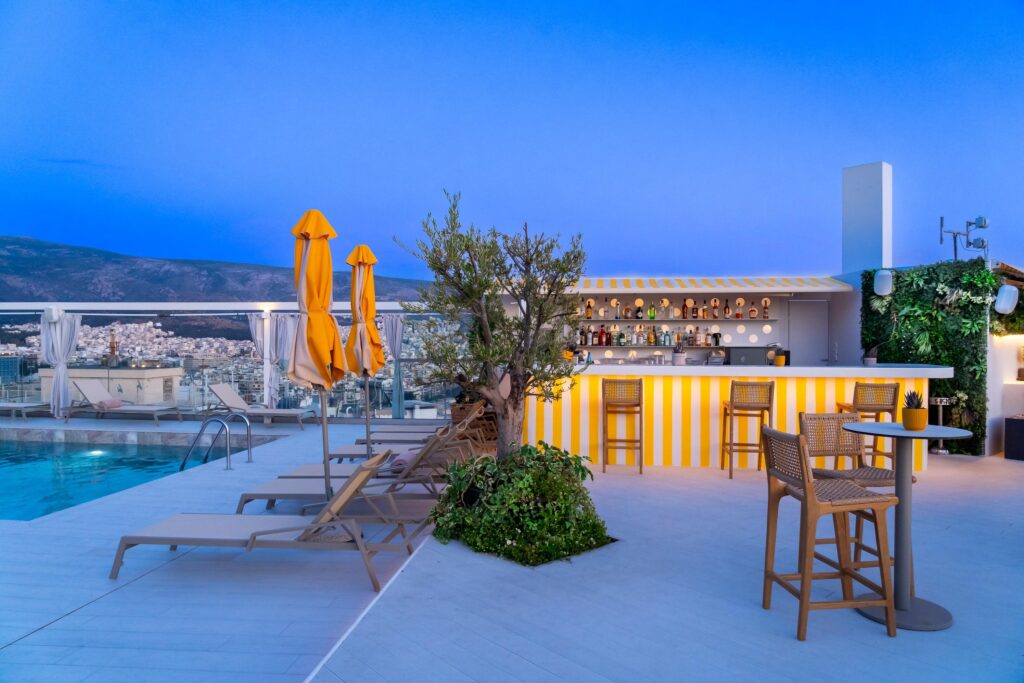 Au septième étage, l’espace autrefois connu sous le nom de Vertigo Club a connu une transformation majeure. Entièrement rénové en 2024, il accueille désormais le Vertigo Pool & Sunset Bar, incarnation nouvelle du luxe balnéaire urbain. Ce rooftop revisité associe piscine extérieure saisonnière et bar à cocktails d’auteur dans un décor épuré, sublimé par des vues panoramiques à couper le souffle sur la capitale grecque. Un lieu hybride, pensé comme un théâtre hédoniste suspendu entre ciel et mer Égée, où l’art de vivre méditerranéen se célèbre au coucher du soleil.