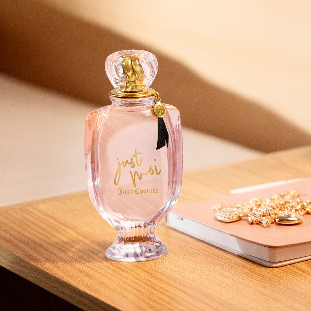 Le flacon, délicatement inspiré des coupes de champagne vintage à la française, incarne avec justesse l’alliance entre féminité audacieuse et élégance naturelle propre au parfum. Sa silhouette finement sculptée, sublimée par une teinte rose poudré et des touches dorées raffinées, exprime une sophistication assumée. Orné d’un ruban noir texturé et d’une inscription manuscrite dorée, il s’impose comme un véritable objet de style, à la fois chic et décontracté, reflétant parfaitement l’esprit unique de Just Moi. Un écrin qui dialogue avec les codes du luxe accessible chers à Juicy Couture depuis sa création.