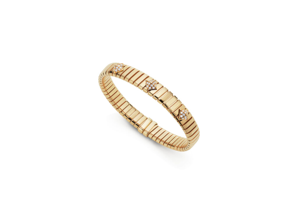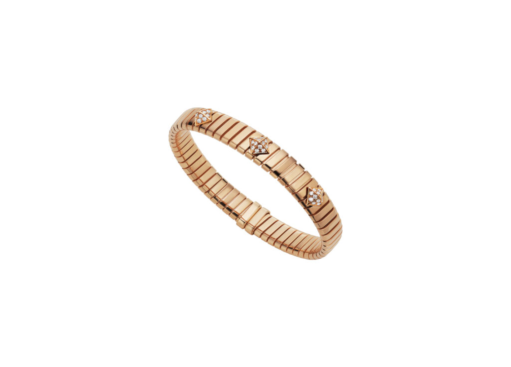 Les icônes de Bvlgari puisent dans l’héritage monumental de Rome : les mosaïques antiques inspirant le motif éventail de Divas’ Dream, les architectures imposantes transposées dans les volumes de B.zero1, les géométries octogonales de Octo ou encore le serpent mythologique devenu Serpenti, symbole de transformation et de sensualité. Le Tubogas, né de l’ingéniosité industrielle, traduit quant à lui l’art de détourner une technique mécanique en une prouesse joaillière fluide et moderne.