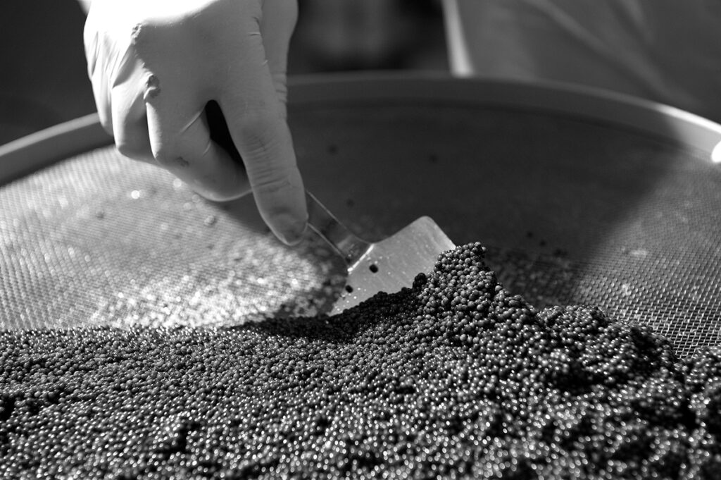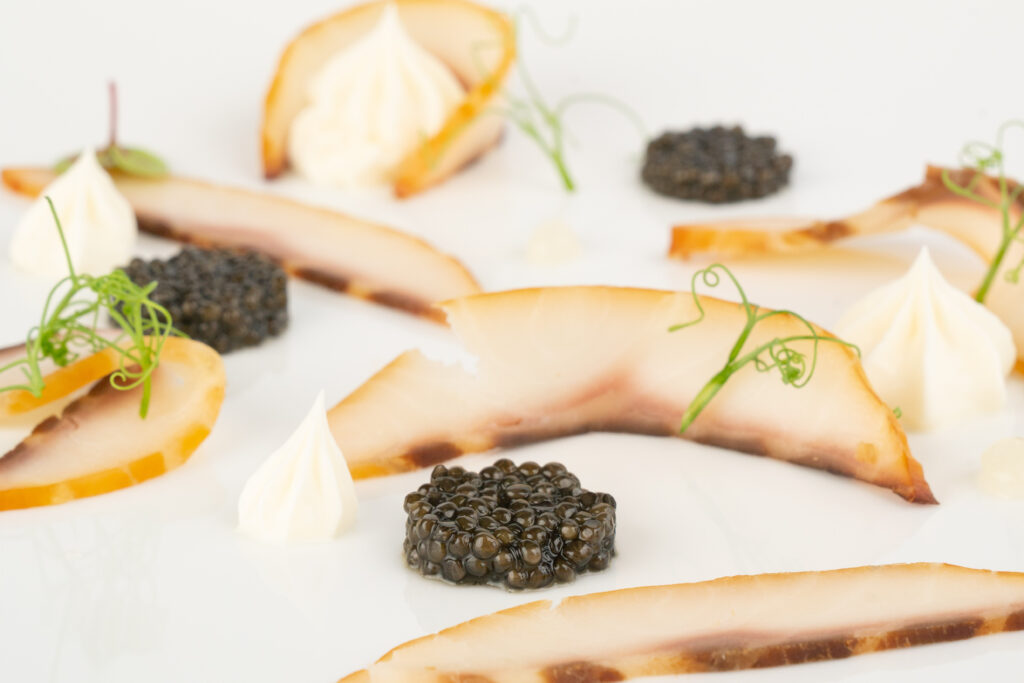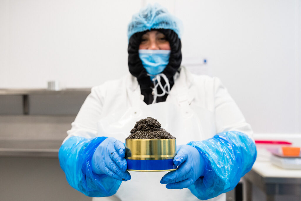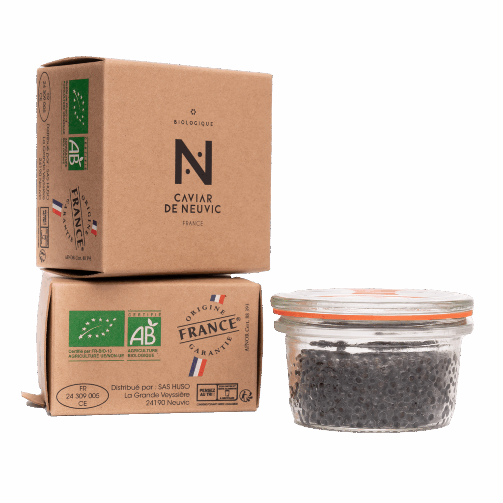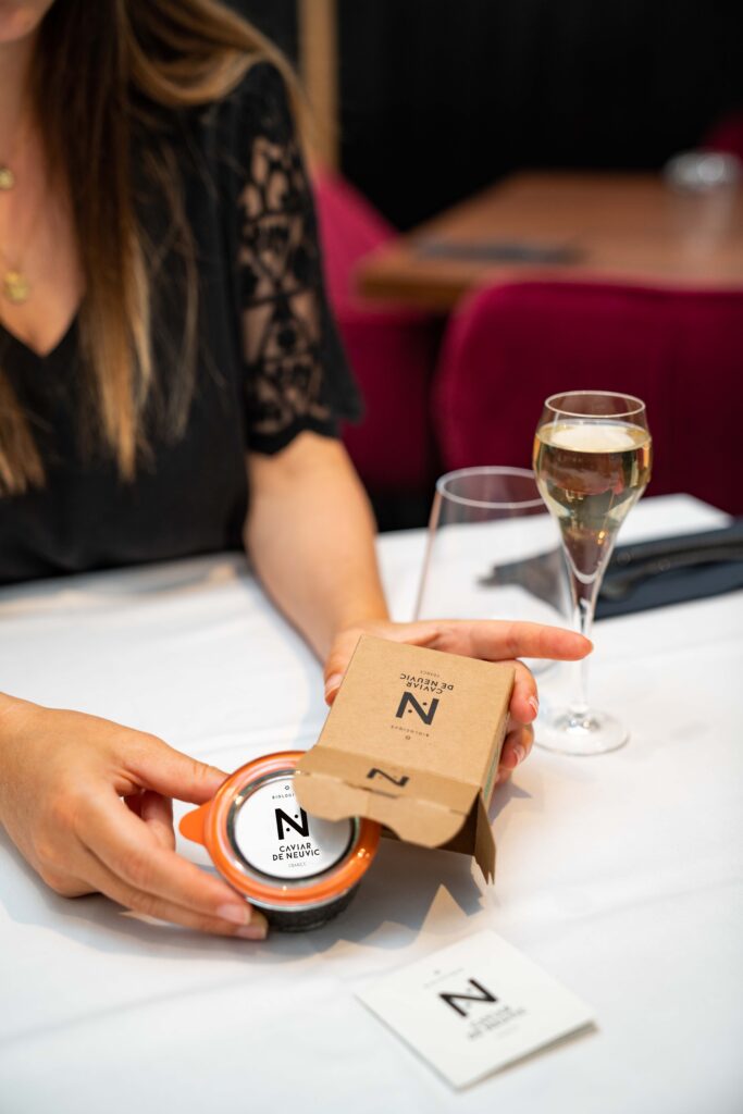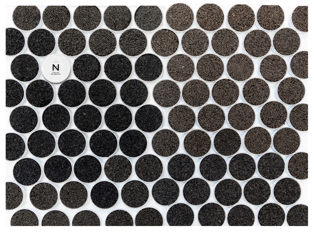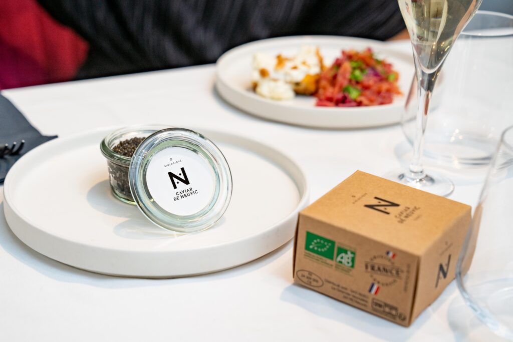 Cette démarche créative s’inscrit dans l’ADN responsable de l’entreprise. Société à Mission depuis juillet 2021, Caviar de Neuvic cultive ses 150 000 esturgeons sous 26 000 m² de panneaux photovoltaïques, première centrale agrivoltaïque dédiée à la pisciculture en France. Le domaine de Neuvic transforme ainsi 95% de chaque esturgeon, des filets fumés jusqu’à la colle de violon issue des vessies natatoires, dans une logique d’économie circulaire exemplaire.