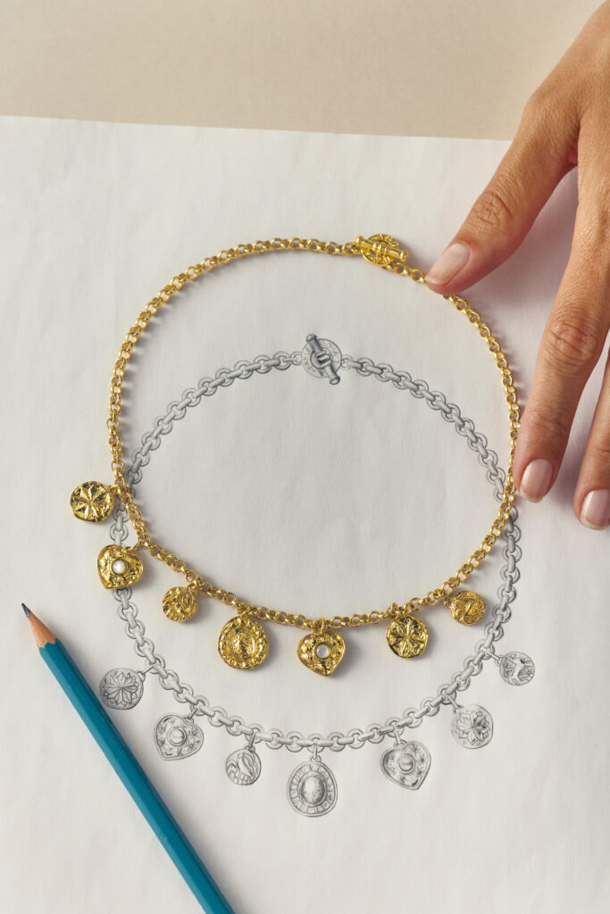 Chaque création naît d’un geste précis, d’une esquisse transformée en bijou par la main de l’artisan. Cette collection met en avant l’essence de l’art joaillier accessible : la créativité qui s’exprime dans le moindre maillon, dans la subtilité d’un relief ou la brillance d’une nacre.