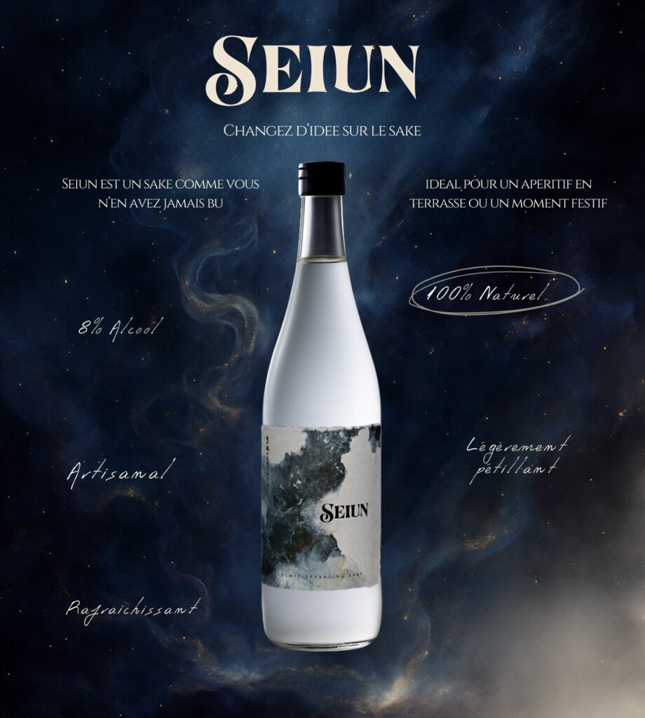 Seiun est un saké faiblement alcoolisé (8%), légèrement pétillant et voilé par de fines particules de riz, à la manière des nigori. Rafraîchissant et floral, il révèle des notes d’agrumes et s’apprécie aussi bien dans un verre à vin que dans une coupe de champagne ou un ochoko. Son prix public indicatif est fixé à 45 €, disponible sur seiun.fr .