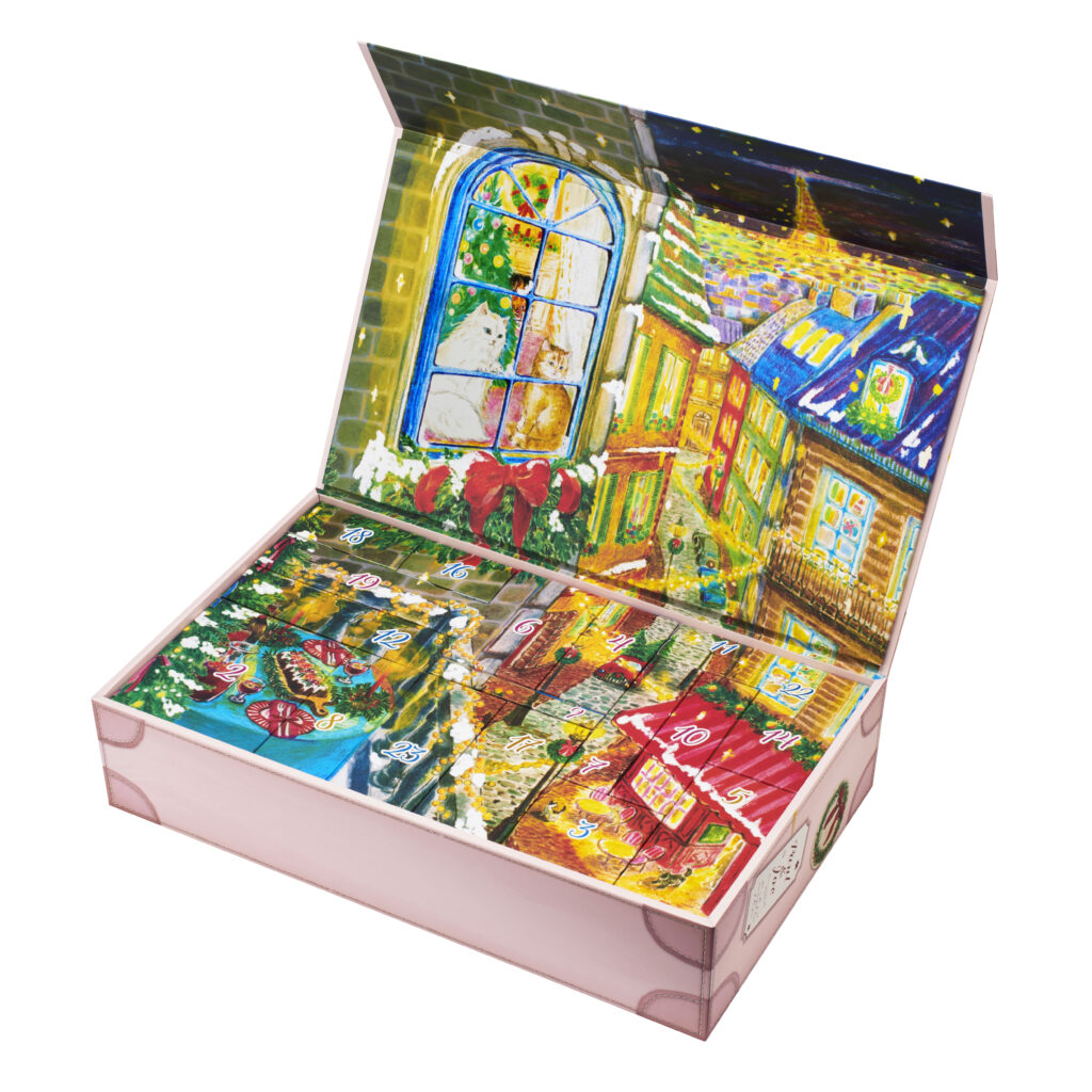 Édité en série limitée et disponible dès le 1er novembre 2025, ce calendrier transforme chaque matin de décembre en fête. Parmi les 24 trésors : bases de maquillage, poudres fixantes, fards à joues, rouges à lèvres, sérum, miroir de sac ou encore mini sac et trousse. Une promenade enchantée dans un Paris scintillant, pour patienter jusqu’à Noël.