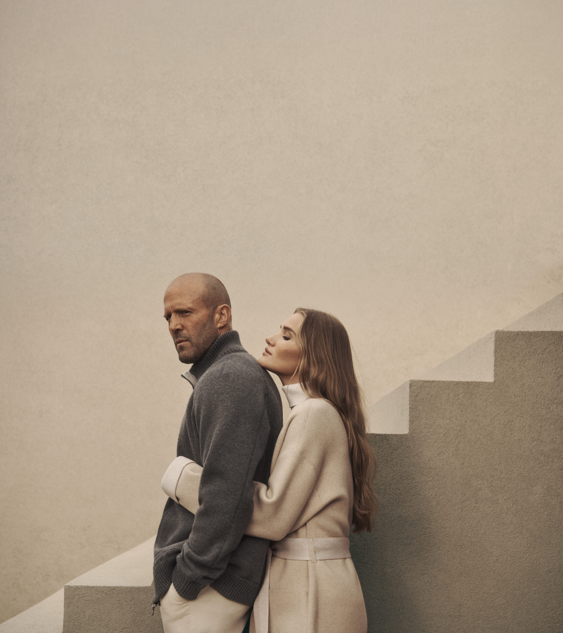Analyse critique : En réunissant Rosie Huntington-Whiteley et Jason Statham, Falconeri associe l’élégance féminine et la virilité charismatique dans une mise en scène intimiste. Une campagne qui illustre l’ADN de la marque : transformer le cachemire en langage universel de sophistication contemporaine, où la mode épouse la lumière et la matière.