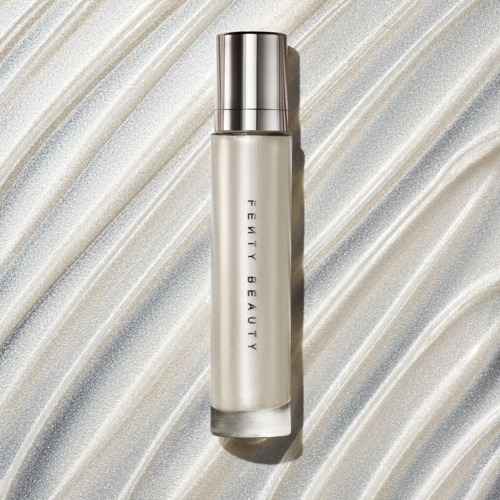 L’iconique Diamond Bomb, produit phare plébiscité par Rihanna elle-même, s’enrichit de trois nouvelles teintes universelles d’All-Over Diamond Veil : Lavender Luv’r (pervenche scintillante), Pink Ice (opale rose) et Trophy Wife (or métallique), toutes proposées à 49,90 euros. La formule gel-poudre, « souple et fraîche au toucher, qui fond sur la peau comme du beurre », selon le communiqué, offre un fini lisse et brillant modulable, présentée dans un étui facetté évoquant un joyau nomade. Cette approche sensorielle et esthétique rappelle la philosophie fondatrice de Fenty Beauty : conjuguer efficacité technique et plaisir d’usage, tout en s’adressant à toutes les carnations sans distinction.