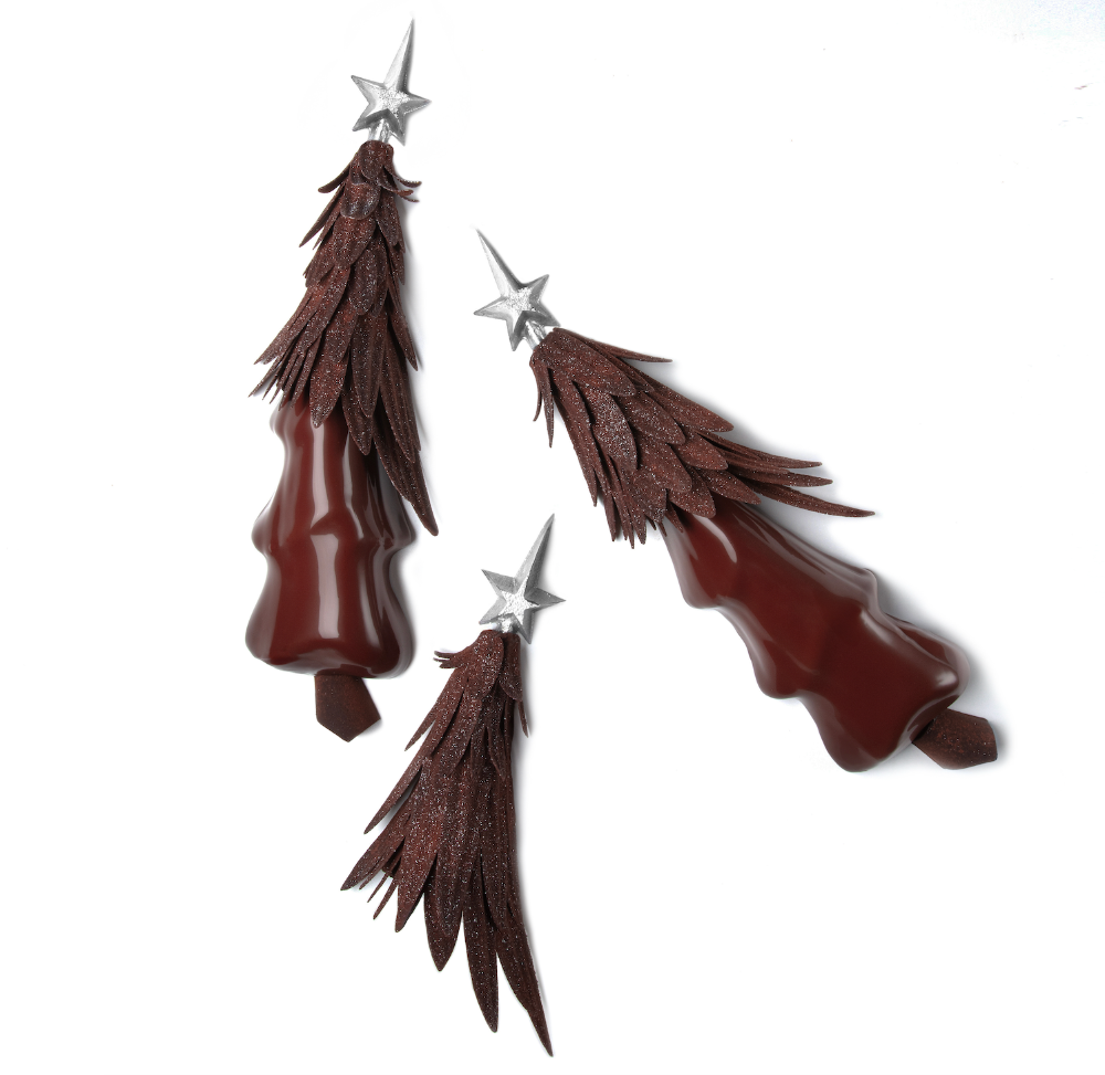 Là où l’enfance rencontre l’innovation, la bûche de Noël du Royal Monceau se dresse fièrement, façonnée à la main telle une ode à la sculpture végétale. Clin d’œil aux goûters d’écoliers, sa mousse chocolat grand cru, son crémeux velouté et son cœur au lait bio de la Ferme de la Fosse à l’Eau célèbrent la mémoire des saveurs enfuies, réveillant avec tact une nostalgie luxueuse. La pâte croustillante et le praliné régressif aux noisettes du Piémont, rehaussés par les chocolats d’exception de la Chocolaterie de l’Opéra, témoignent d’une générosité rare et d’un sourcing exigeant. Chaque détail – l’étoile scintillante, le décor forestier – illustre la main de l’artisan et la recherche du sublime.
