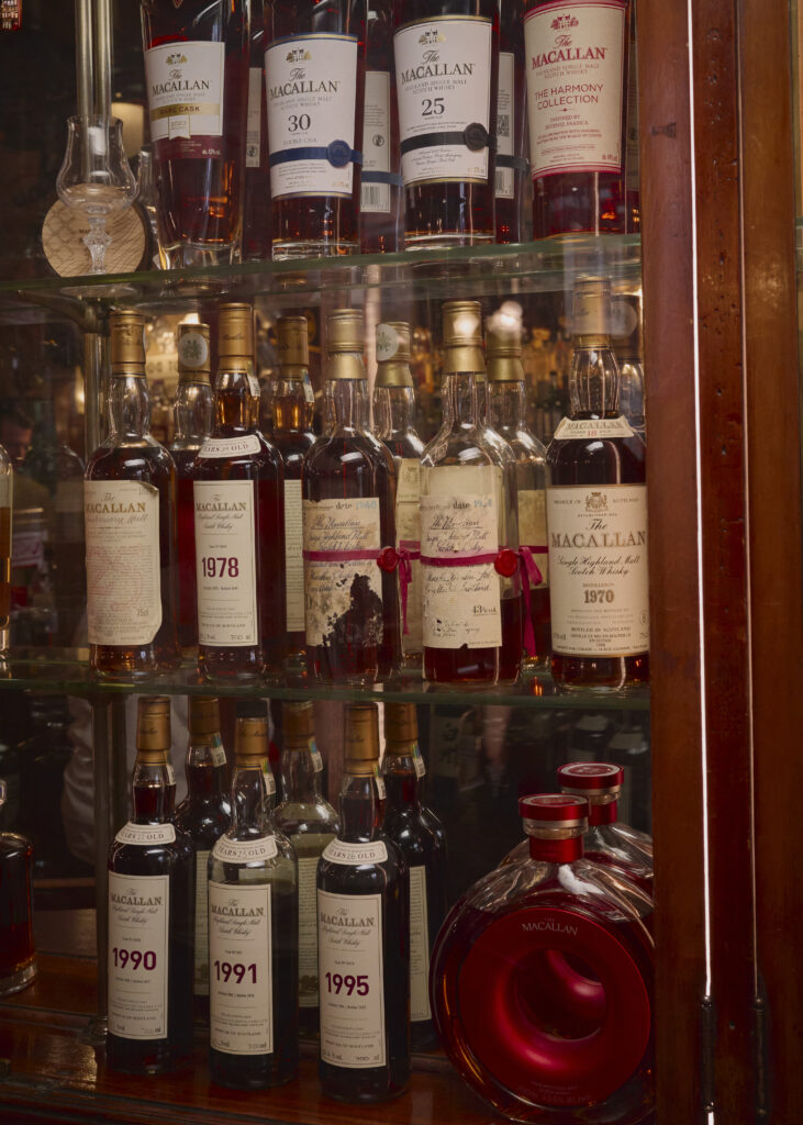 Au-delà du cocktail signature, le Harry’s Bar Paris abrite une sélection prestigieuse de bouteilles Fine & Rare de The Macallan, témoins authentiques de l’évolution de la distillerie à travers les décennies : The Macallan Fine & Rare 1938, 1940, 1978, 1990, 1991 et 1995. Ces cuvées millésimées incarnent la dimension patrimoniale du whisky de luxe, où chaque bouteille devient archive liquide d’un savoir-faire transmis de génération en génération. L’utilisation d’anciens fûts de sherry en chêne, combinée à la maîtrise parfaite des Whisky Makers, confère à chaque expression cette qualité exceptionnelle qui justifie les enchères records observées sur le marché secondaire.