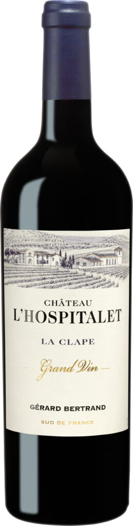 Château l’Hospitalet Grand Vin Rouge 2022 (AOC La Clape), assemblage Syrah, Mourvèdre et Grenache, incarne la mer et la garrigue : tanins soyeux, nez d’épices et de fraise, élevage de seize mois — 43 € TTC.