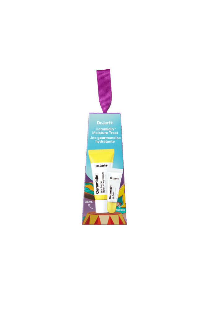 À l’approche des fêtes, le coffret Ceramidin Moisture Treat Duo (30 €) réunit la crème hydratante et le baume à lèvres : un duo essentiel à glisser dans sa trousse ou à offrir. Un geste simple qui condense la philosophie de Dr.Jart+ : rigueur scientifique, design optimiste et soin joyeux.