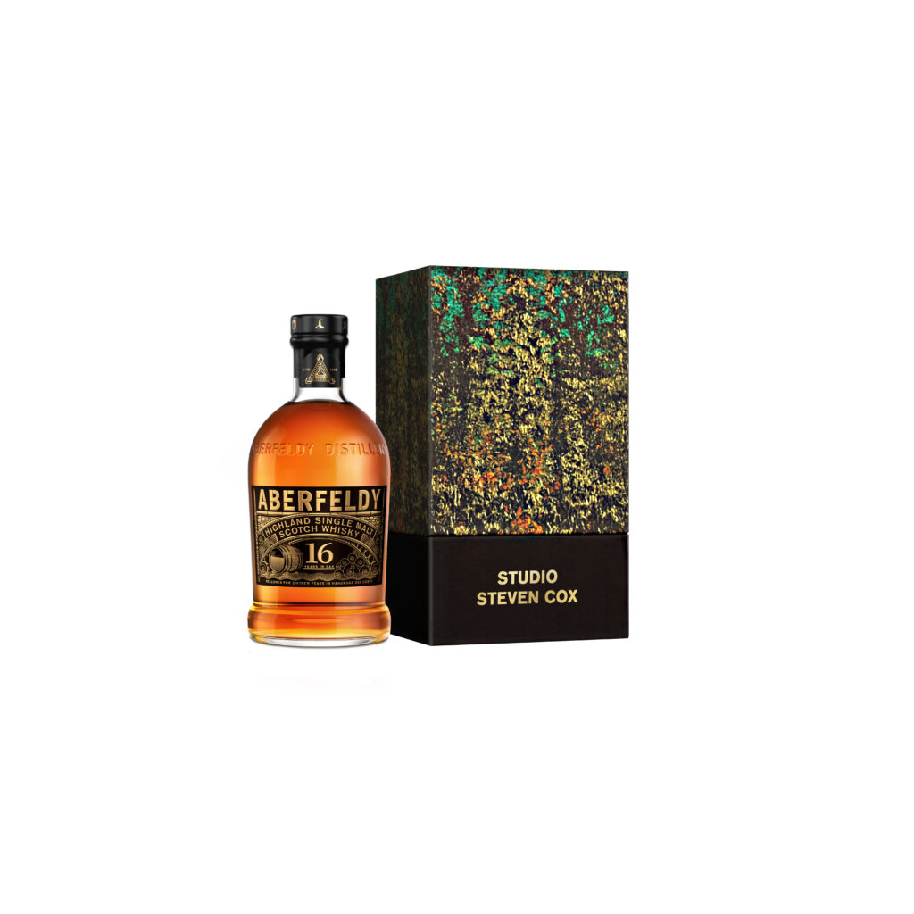 Aberfeldy s’associe à l’artiste écossais Steven Cox, qui signe un habillage exclusif inspiré des paysages des Highlands.