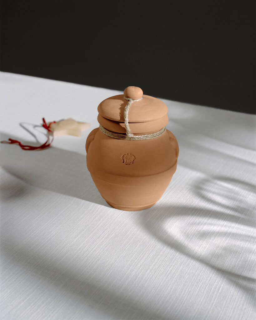 Pour ponctuer les intérieurs d’une ambiance tamisée, la Bougie Parfumée reprend la signature épicée de l’eau de Cologne. Elle a été pensée pour les « petits coins » de la maison, créant des alcôves olfactives où les nuances orientales invitent au recueillement et à la sérénité hivernale.