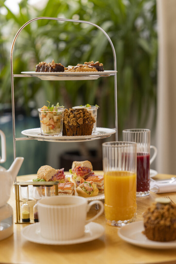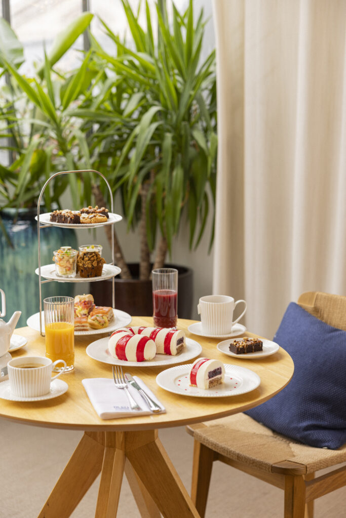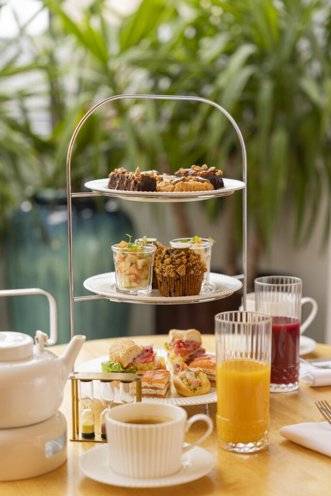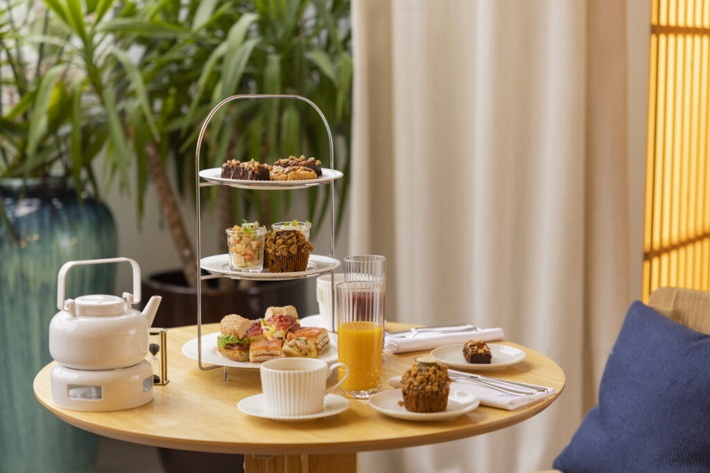 Côté salé, Xavier Pistol s’approprie les classiques américains avec un regard parisien : bun homard & avocat, mini bagel au pastrami, finger au saumon fumé. Des bouchées généreuses, immédiatement lisibles, qui évoquent Manhattan sans jamais tomber dans la caricature. En miroir, Bryan Esposito rend hommage à l’univers réconfortant des bakeries new-yorkaises avec un trio sucré calibré pour l’heure dorée : muffin à la myrtille, cookie cacahuète, crumble poire spéculoo.