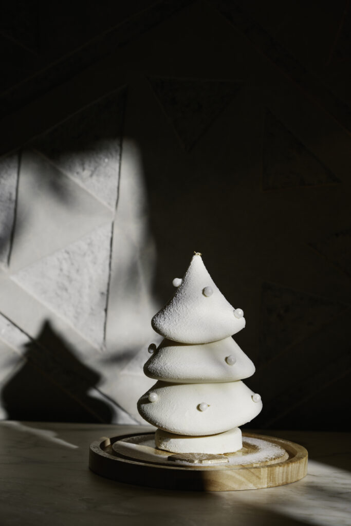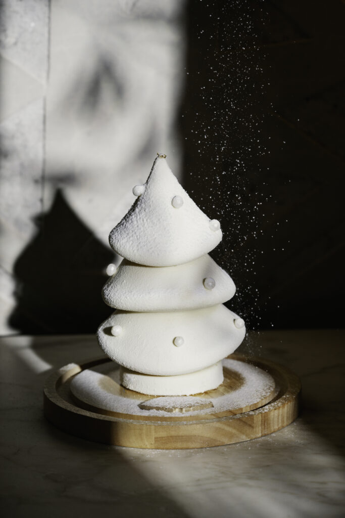 Si la féerie visuelle est indéniable, le voyage est avant tout gustatif. La saison s’ouvre sur une note de douceur aérienne avec la bûche « Le Nuage », disponible dès le 18 décembre. Création signature du Chef Pâtissier Hicham Khabata, cette œuvre sculpturale évoque le ciel d’hiver marrakchi. Elle est une prouesse d’équilibre : la rondeur du biscuit pistache rencontre le croquant du praliné, tandis qu’un cœur vif d’açaí et de cerise vient dialoguer avec la fraîcheur locale du zeste de citron Beldi. Une mousse à la vanille fumée, parsemée d’or broyé, enveloppe le tout, transformant le dessert en bijou comestible.