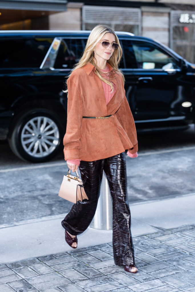 Ce qui retient l’attention, ce n’est pas l’idée de “look” mais la manière dont il tient dehors. New York teste les vêtements : vent, trottoirs, agenda serré. Le total look Fendi fonctionne quand il résiste à la ville sans devenir armure. Et, au milieu, un repère : le Peekaboo. Non pas comme “it-bag” crié, mais comme objet d’usage élevé au rang de signature. Fendi rappelle lui-même un point utile : le Peekaboo est créé en 2009, avec cette idée de beauté double — ce qui se montre, ce qui se cache. À New York, ce principe devient presque pratique : un sac qui admet l’intérieur, donc le quotidien.