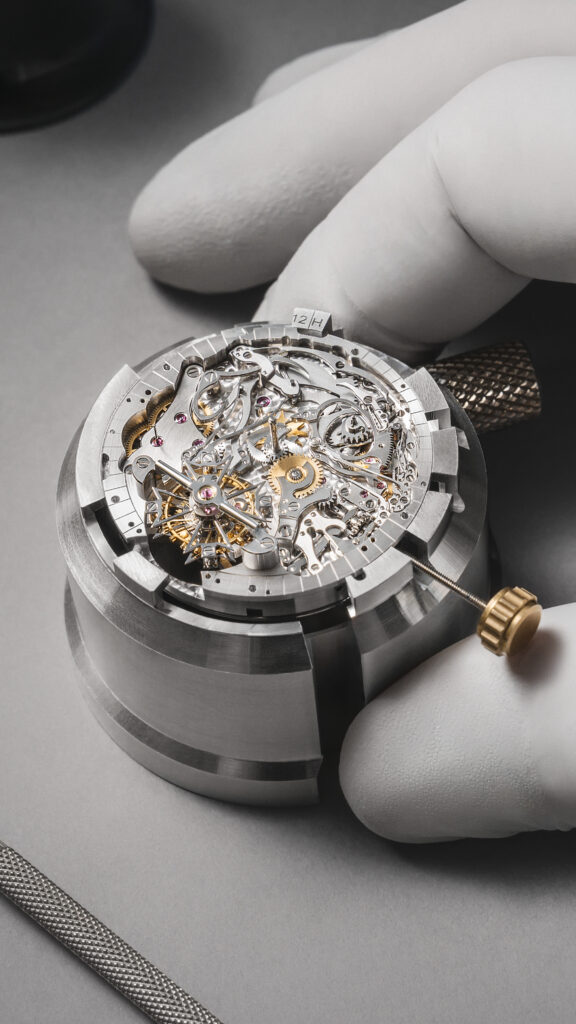 Cette pièce unique illustre une convergence rare entre l’ambition technique et la poésie décorative. Le calibre manufacture 2755 GC16, héritier de la Tour de l’Île présentée en 2005, orchestre 16 complications dans une architecture où chaque fonction trouve sa place sans compromettre la lisibilité. Le tourbillon, dont la cage adopte la forme de la croix de Malte emblématique depuis 1880, régule ce ballet mécanique tout en servant d’indicateur de petite seconde. La répétition minutes, dotée d’un régulateur de sonnerie rotatif totalement silencieux utilisant la force centripète, transforme le temps en partition musicale avec une clarté acoustique optimisée par la géométrie du boîtier de 47 millimètres.