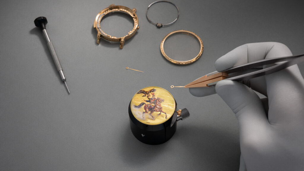 L’alliance de la gravure en taille douce et de la peinture miniature sur émail grand feu représente un défi technique considérable. Près de 160 heures sont consacrées à la gravure manuelle de chaque boîtier, avec des incisions d’une finesse extrême variant entre 1/10e et 2/10e de millimètre. Les cadrans exigent quant à eux 120 heures supplémentaires de travail minutieux, incluant vingt heures pour la seule gravure du fond et le reste pour l’application successive de six à sept couches d’émail, chacune suivie d’une cuisson entre 800 et 900°C.