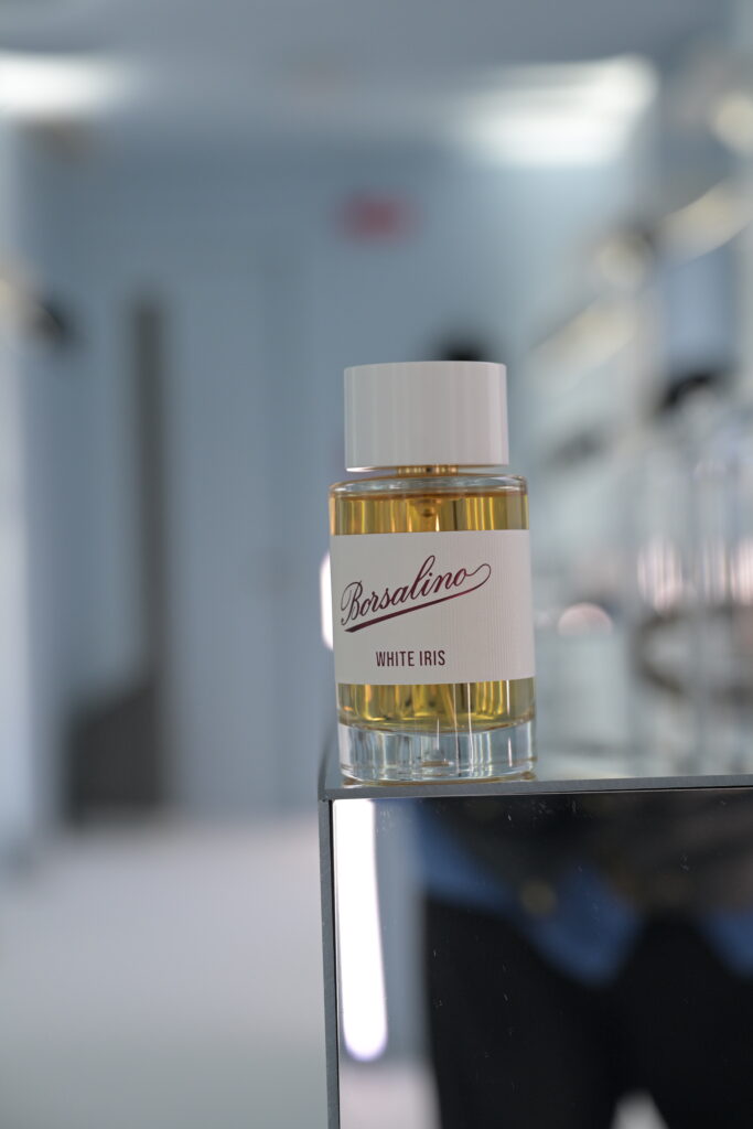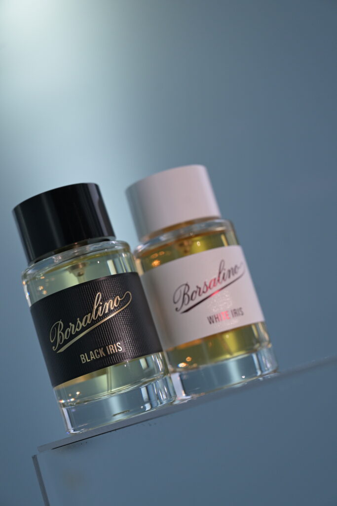 Ce qui frappe d’emblée dans cette démarche, c’est l’intention affichée de créer non pas un simple pendant féminin, mais un véritable rendez-vous olfactif. Black Iris et White Iris ont été conçus pour se porter ensemble lors d’un premier rendez-vous, incarnant respectivement la figure masculine enveloppée de mystère et la silhouette féminine radieuse. Cette approche, qui évoque les duos légendaires du cinéma italien — celui-là même que Borsalino a tant habillé —, témoigne d’une compréhension fine de la construction narrative au sein du luxe contemporain. L’homme Borsalino rencontre la femme Borsalino : le parfum devient scénario, le flacon devient personnage.