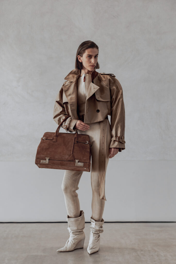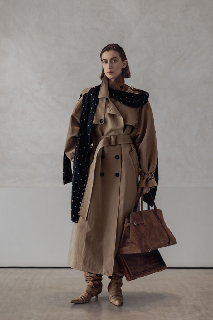 Cette saison marque un tournant : pour la première fois, l’intégralité de la collection a été conçue et fabriquée en Italie. Le choix n’est pas anodin. Carmel cherche à produire des vêtements qui ne semblent appartenir à aucune époque — ni contemporains, ni délibérément rétro. « Quand on fait quelque chose qui ressemble à maintenant, ça devient vieux très vite », expliquait-il à WWD après sa présentation du 29 septembre. Les ateliers italiens, avec leur maîtrise séculaire du tailoring et leur rapport au temps long, offraient le cadre idéal pour cette entreprise.