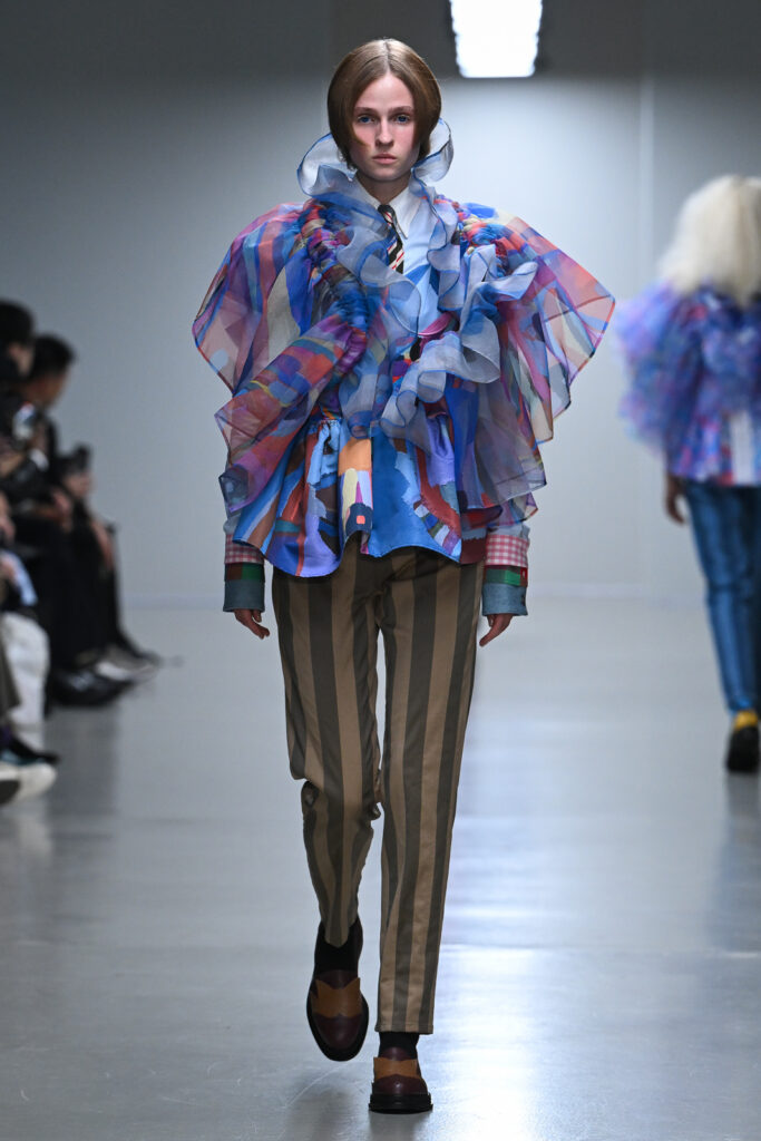 « La mode devient un réceptacle pour le battement du cœur, honorant la beauté de la différence comme la plus pure célébration de la vie et de la résilience », écrit Morinaga dans ses notes de collection. Cette phrase, qui pourrait sonner comme un slogan, prend ici une densité particulière. Car le créateur ne se contente pas de célébrer l’altérité : il la rend littéralement portable, transformant les paysages intérieurs de ces artistes en surfaces habitables.
