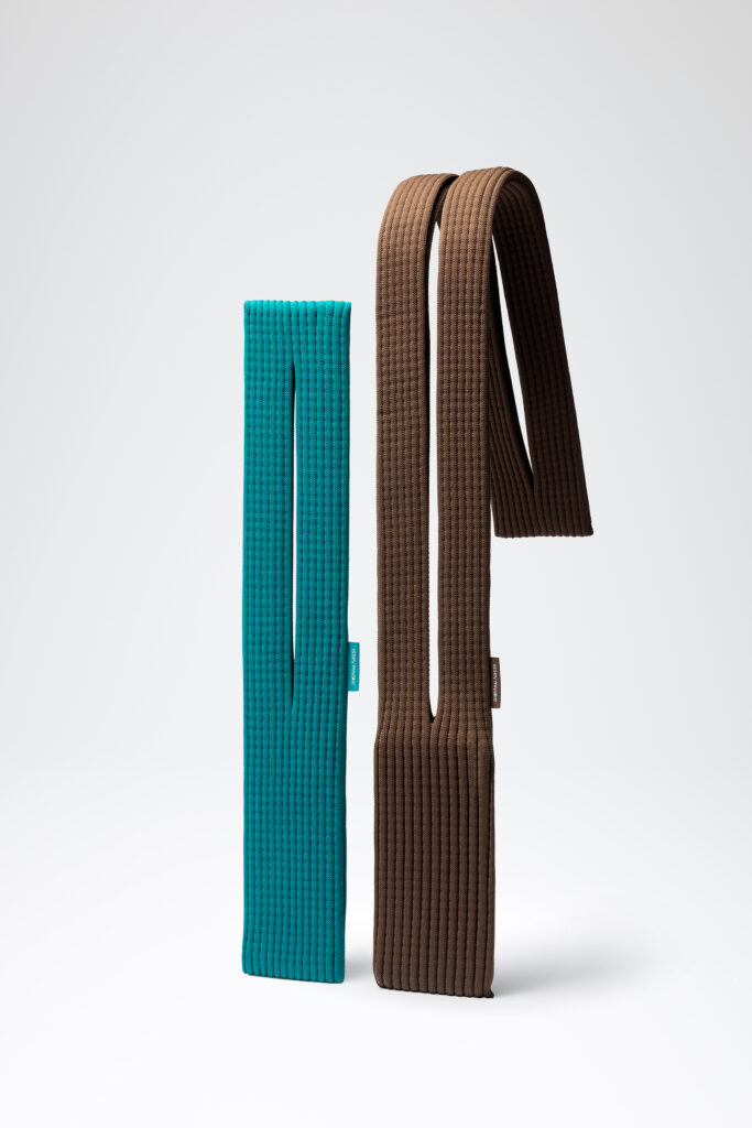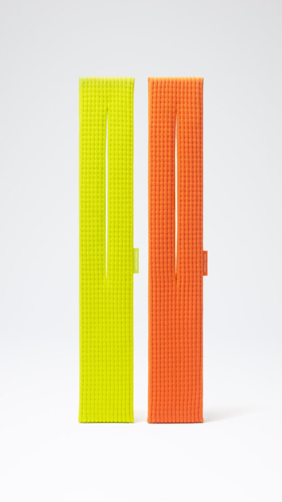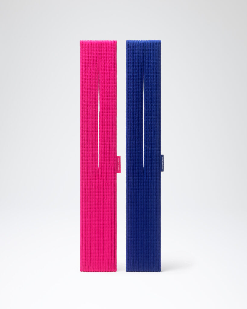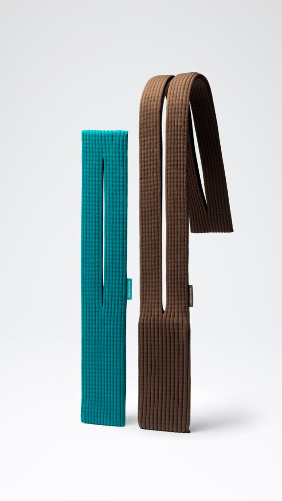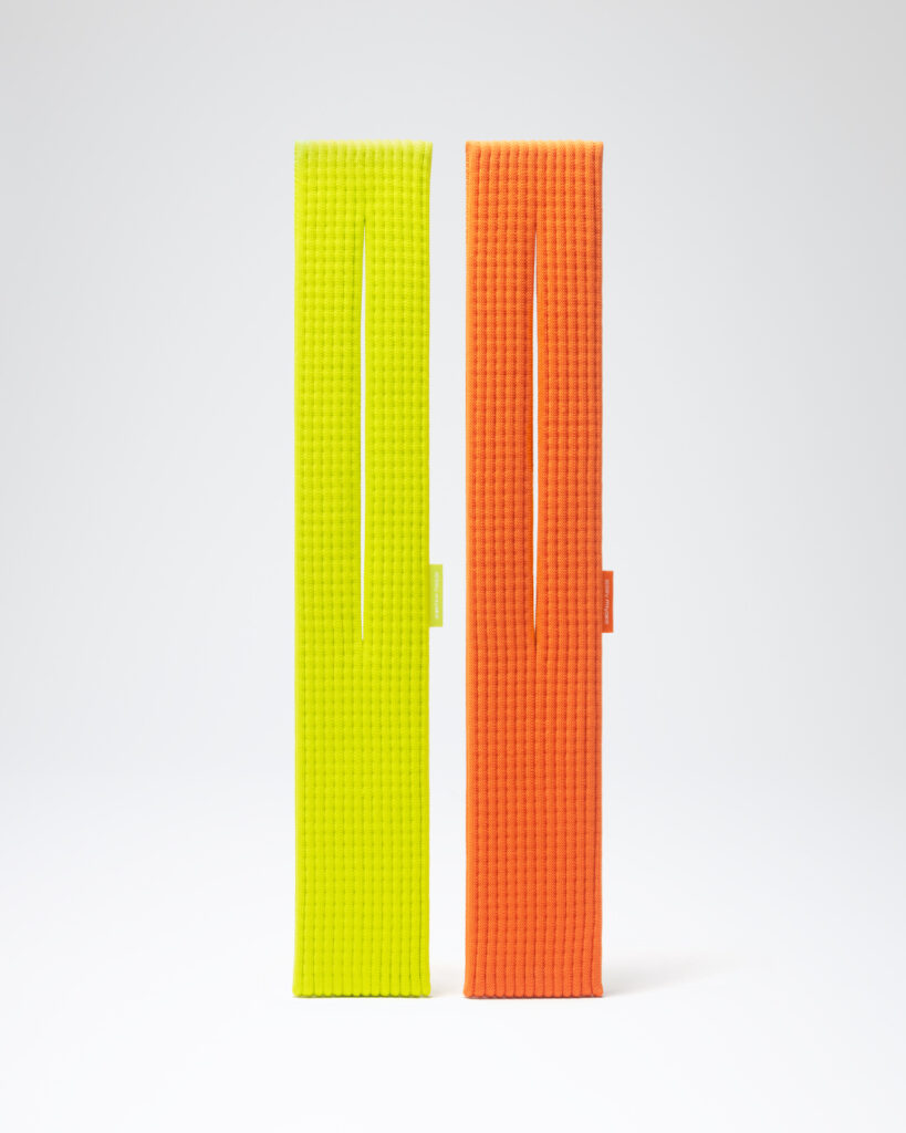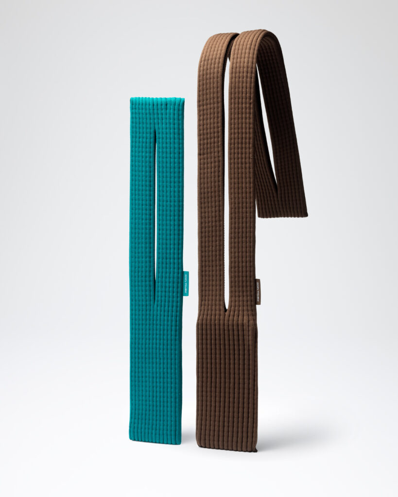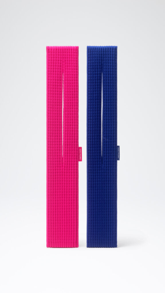 La référence au plissé n’est pas décorative. Elle est structurelle. La maille côtelée évoque les recherches historiques d’Issey Miyake sur le mouvement et la modularité, mais transposées ici à un usage quotidien contemporain : le téléphone, prolongement constant de la main et du regard. L’iPhone Pocket ne cherche pas à effacer cette présence. Au contraire, il l’assume. Le textile ajouré laisse deviner l’écran, les contours, parfois même la couleur de l’appareil. Le contenu n’est jamais dissimulé, simplement accompagné.
